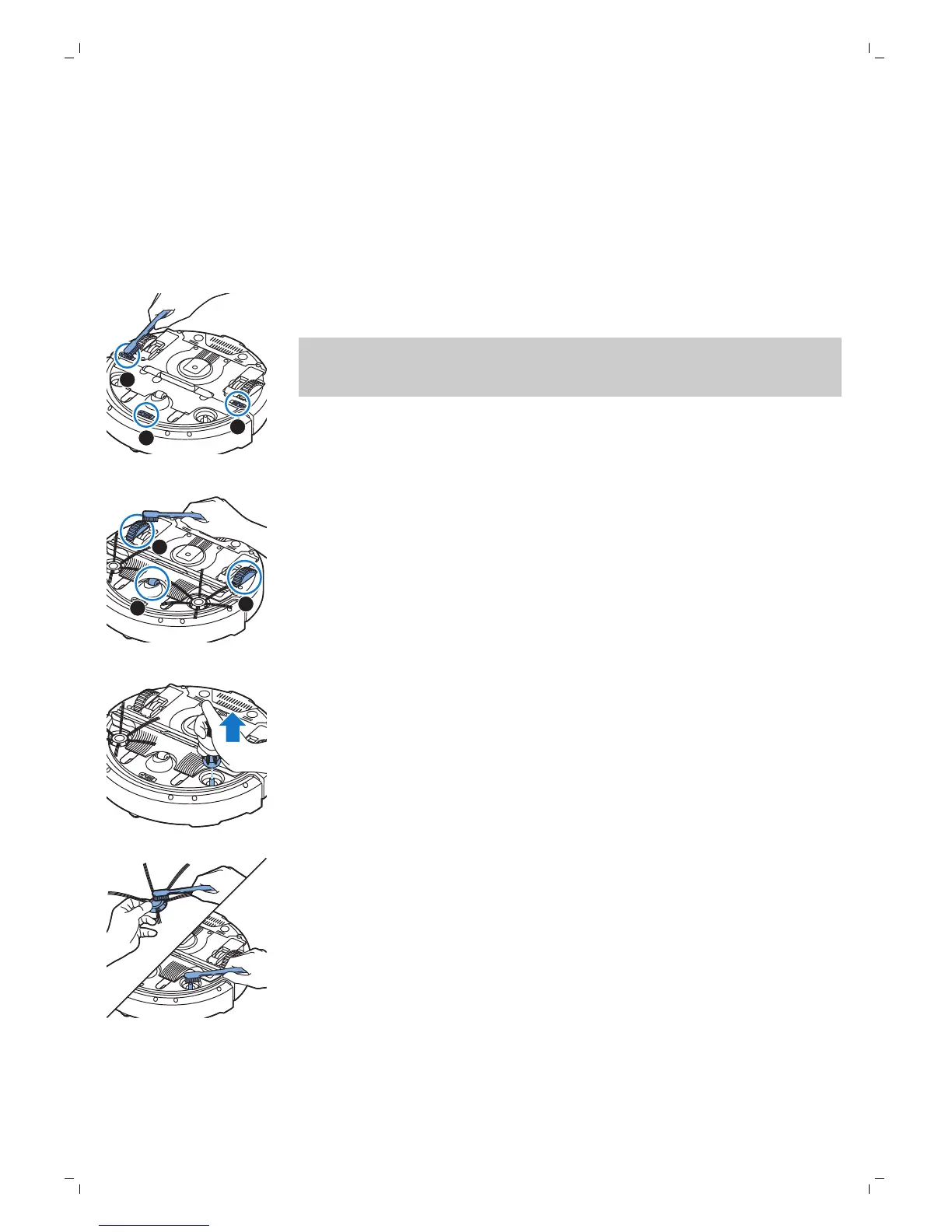 6 Убедитесь, что на боковых щетках и на нижней панели робота-пылесоса