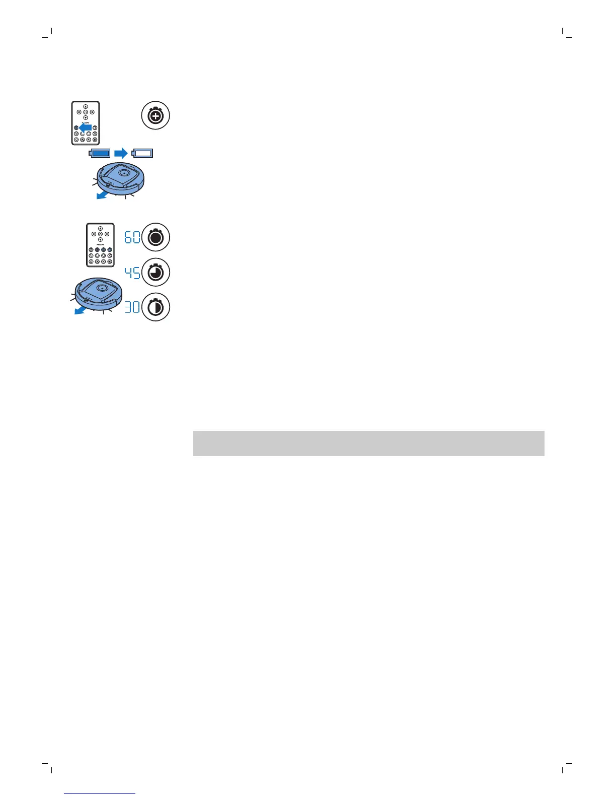 úklid na dobu 60, 45 a 30 minut. Po uplynutí doby úklidu se robot vrátí