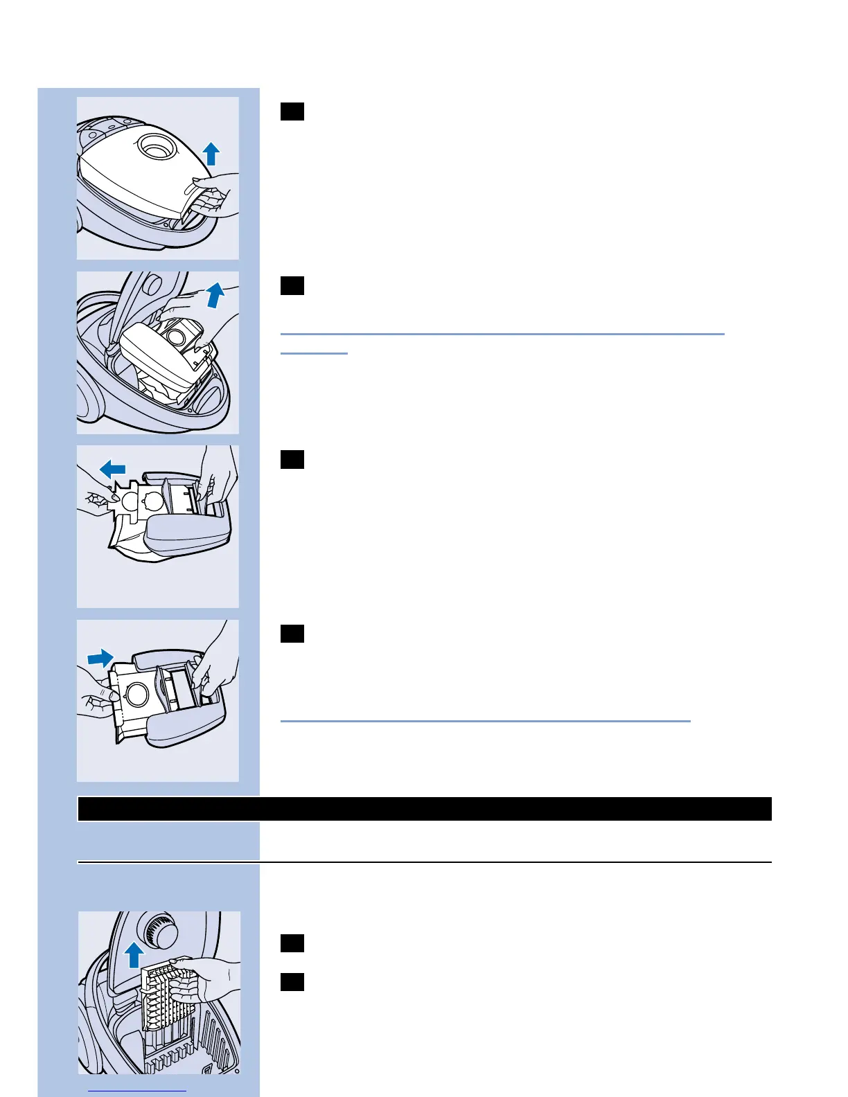1 Remove the dustbag holder with the dustbag.