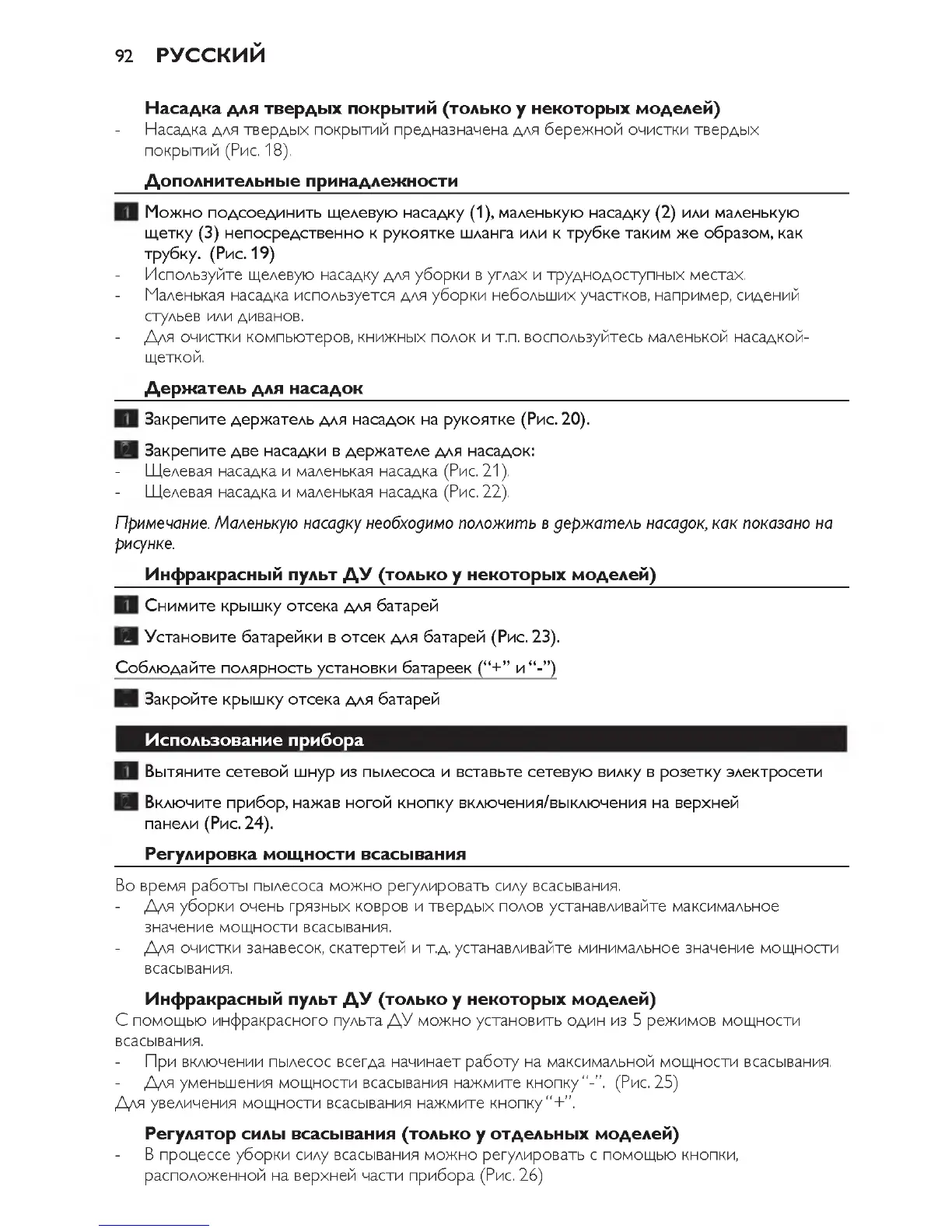 - Для уменьшения мощности всасывания нажмите кнопку “-”. (Рис. 25)
