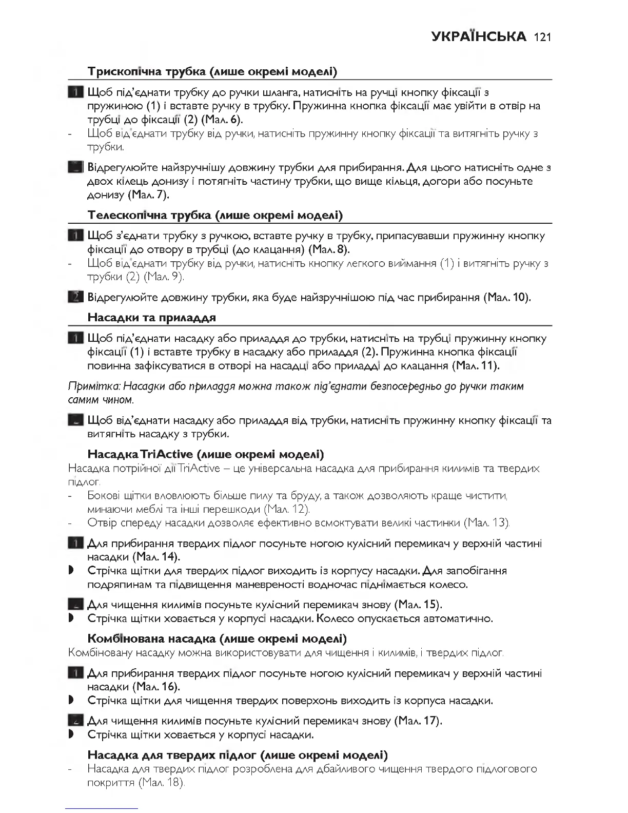 2] Вiдрегулюйте довжину трубки, яка буде найзручнiшою пiд час прибирання (Мал. 10).