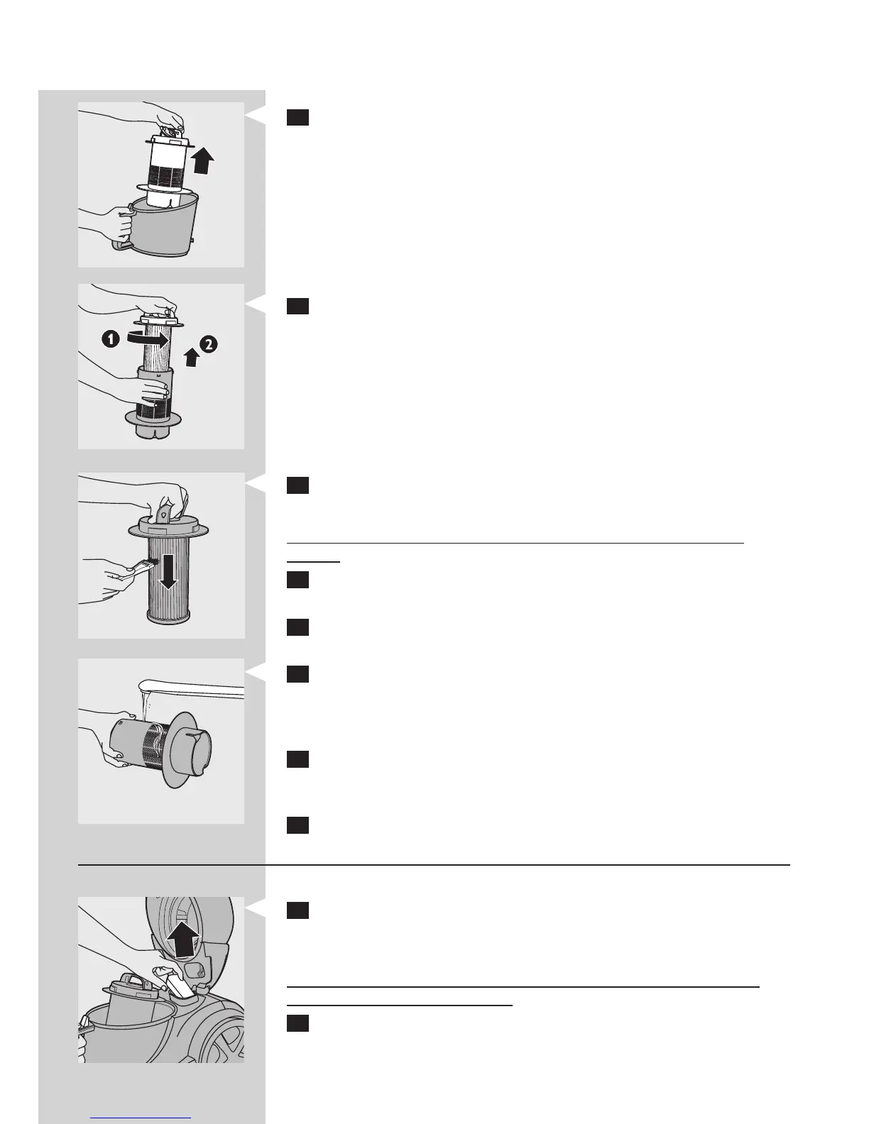 9 Ja vēlaties izmazgāt filtra cilindru, mazgājiet to rūpīgi tikai ar ūdeni.