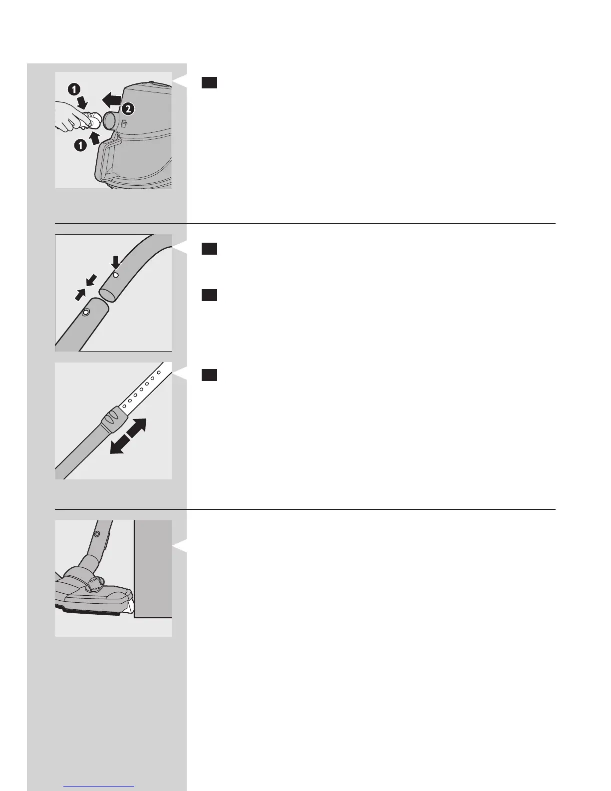 vzmetni gumb na ročaju in vstavite ročaj v sesalno cev ter namestite