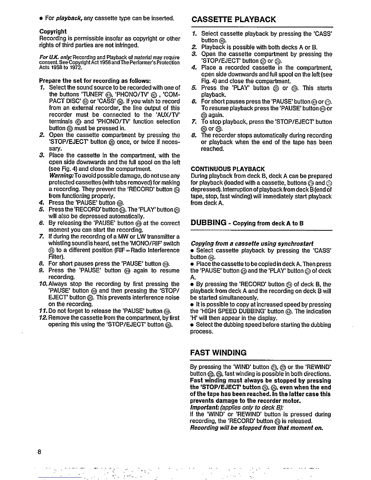 Philips FCD 285 - CASSETTE PLAYBACK AND DUBBING; Tape Playback and Copying