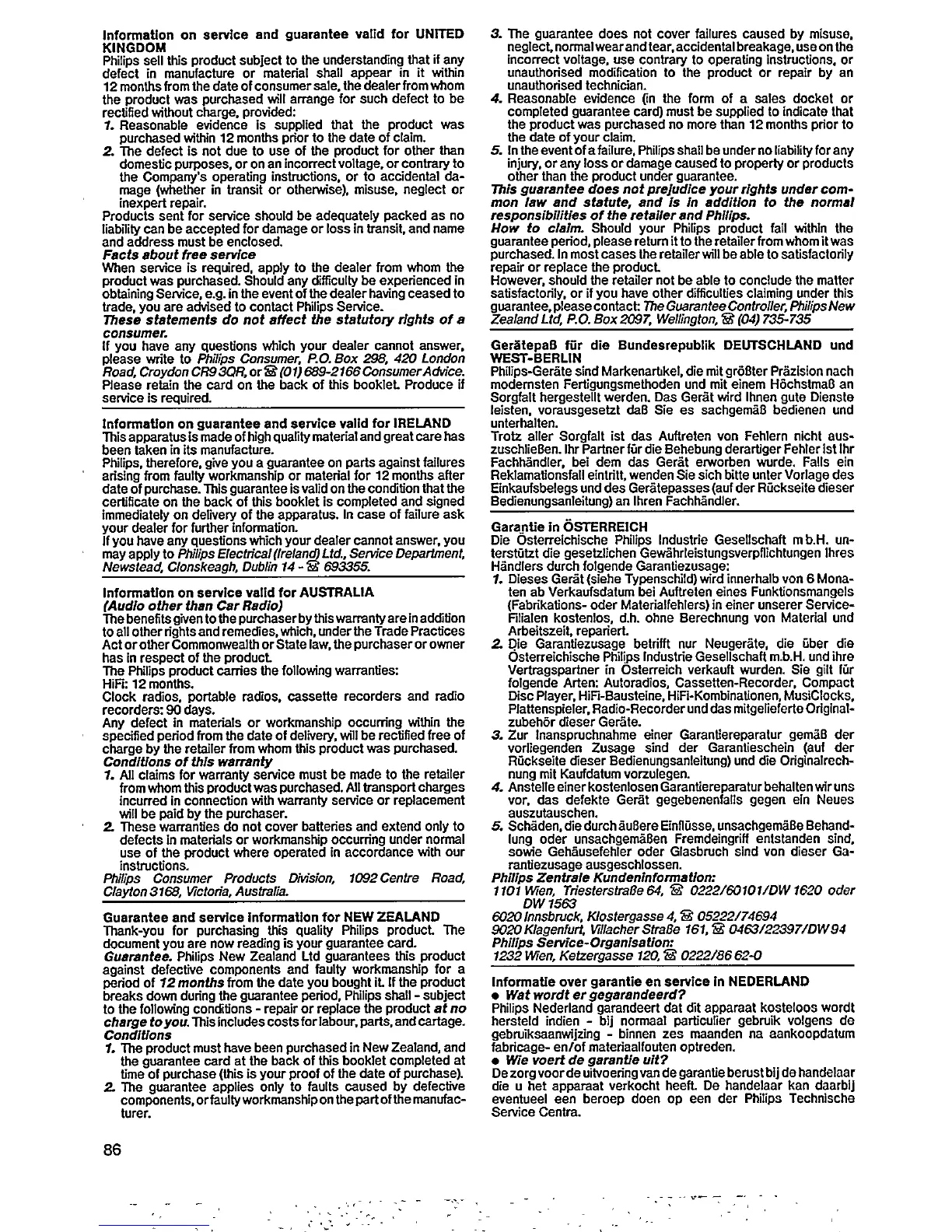 Philips FCD 585 - Warranty and Service Information; UK, Ireland, Australia, NZ Warranty; European Warranty Summaries