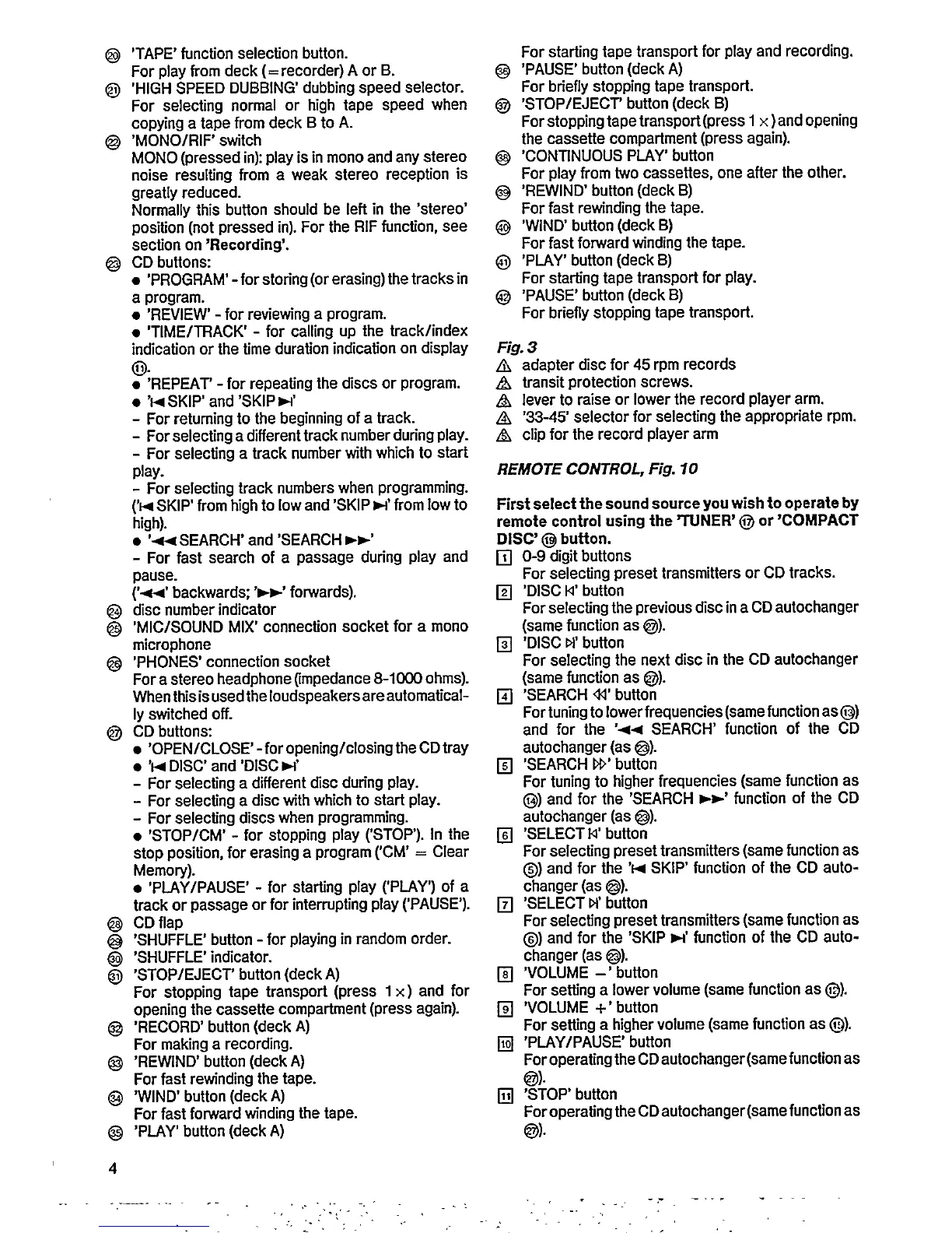 Philips FCD 585 - Remote Control Operation; Remote Control Button Functions