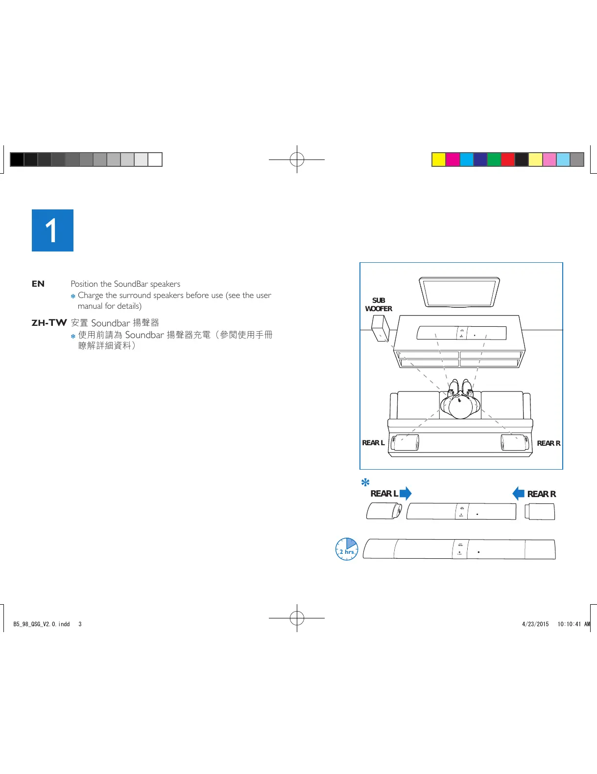 EN Position the SoundBar speakers