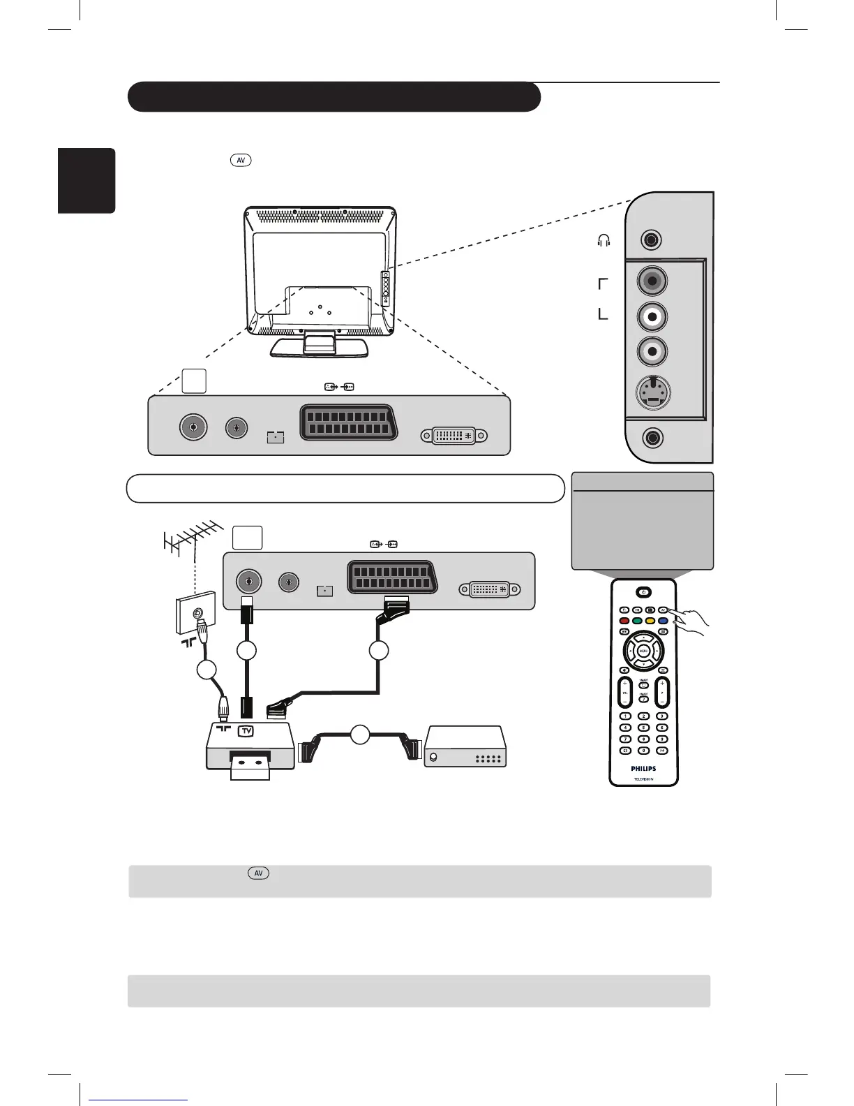 Branchez le fil d’antenne 1. Utilise zun câble péritel de bonne qualité 2 pour obtenir une qualité d’image