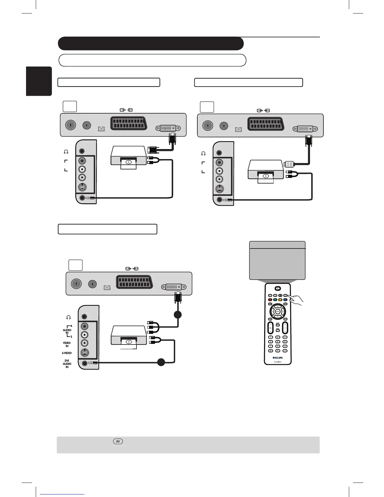 & Branchez la sortie DVI/CVI de votre appareil HD sur l’entrée DVI-I de votre téléviseur LCD.