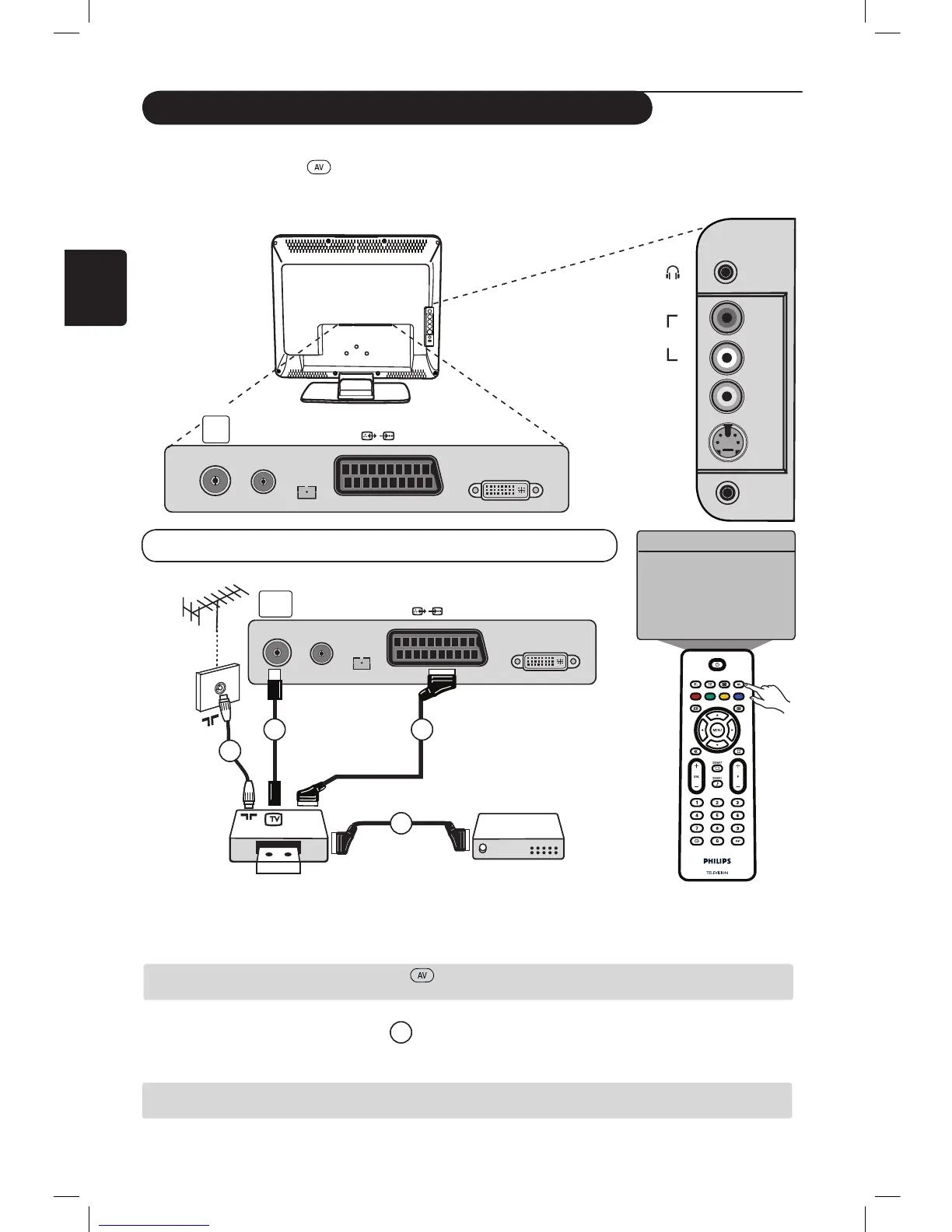 Csatlakoztassa az antenna kábelét 1. Használjon jó minőségű SCART kábelt 2 az optimális képminőség