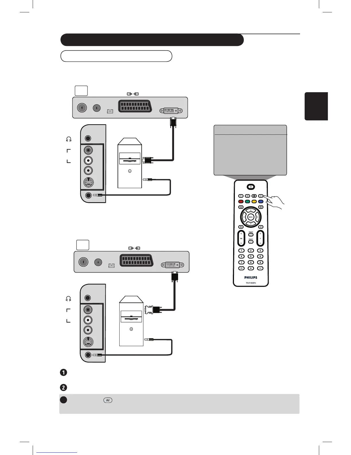 & Csatlakoztassa a számítógép DVI kimenetét az LCD TV DVI-I bemeneti aljzatába. Ha a számítógép