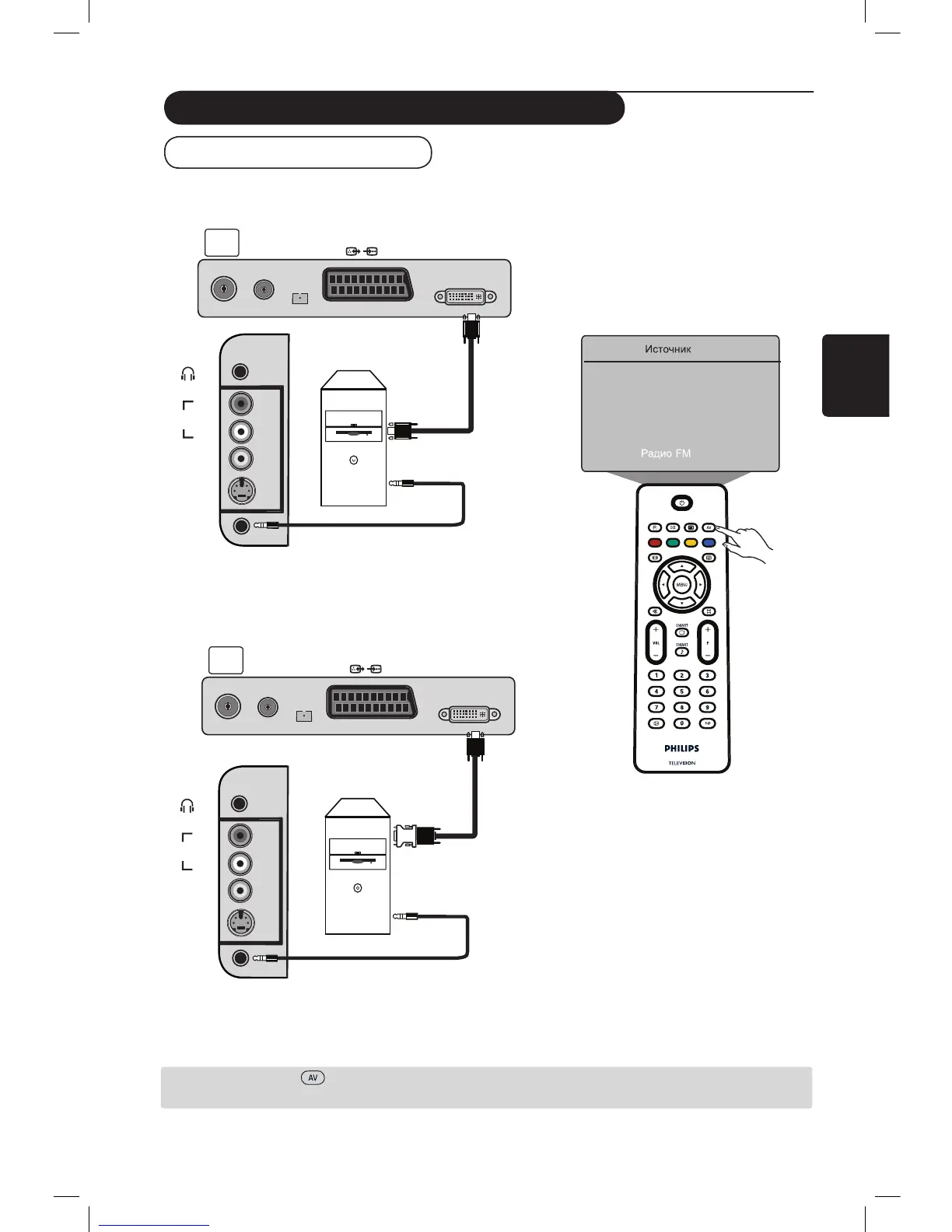 é Подключите аудиовыход компьютера к аудиовходу DVI телевизора.