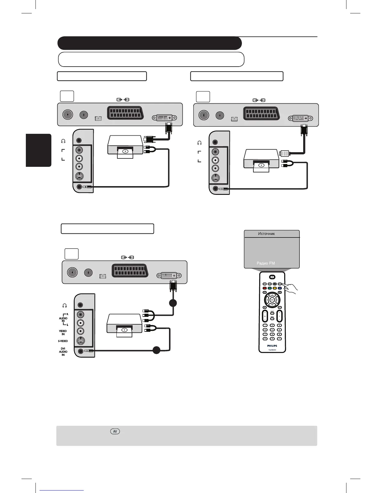 é Подключите аудиовыходы (красный и белый) ресивера HD к аудиовходу DVI