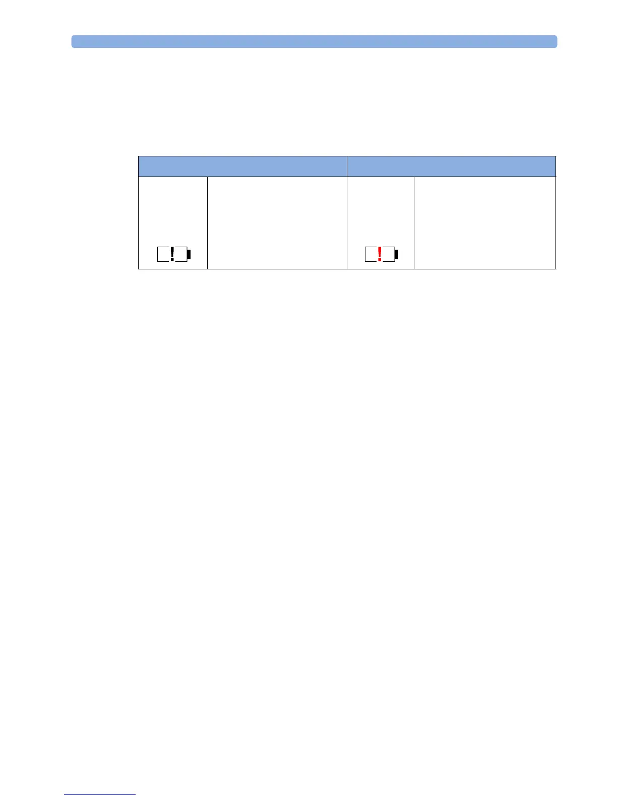 battery gauge containing a "!" symbol. If the symbol is red, this indicates a critical situation. You can