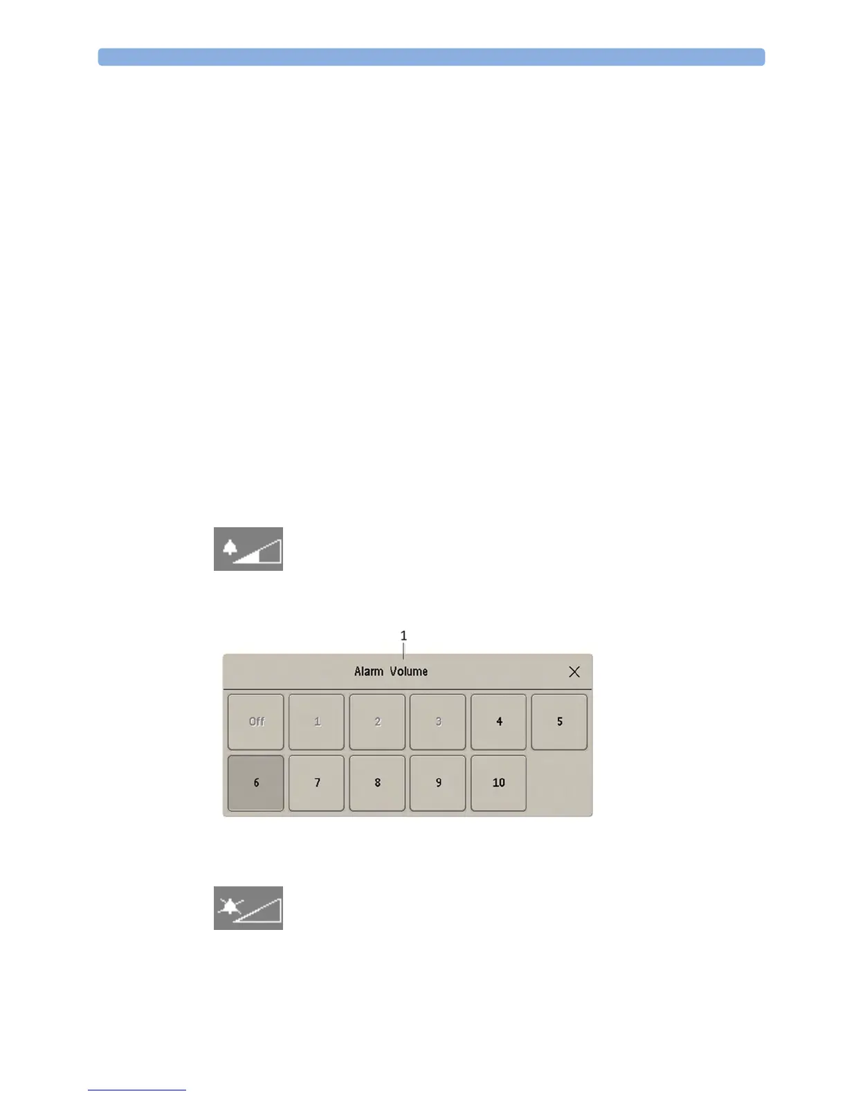 The alarm volume symbol at the top right of the monitor screen gives you an indication of the current