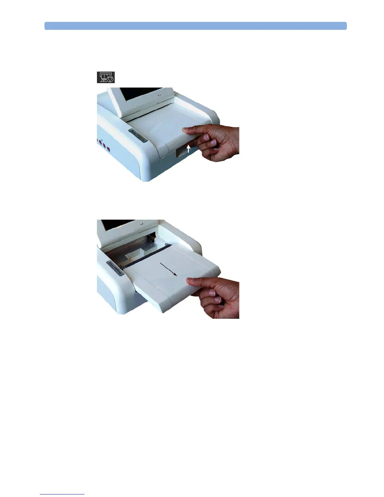 2 Press the paper table release to unlock the paper drawer and then pull the table forward to open it