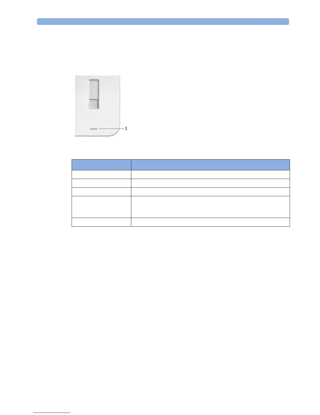 The battery status LED shows five different states: