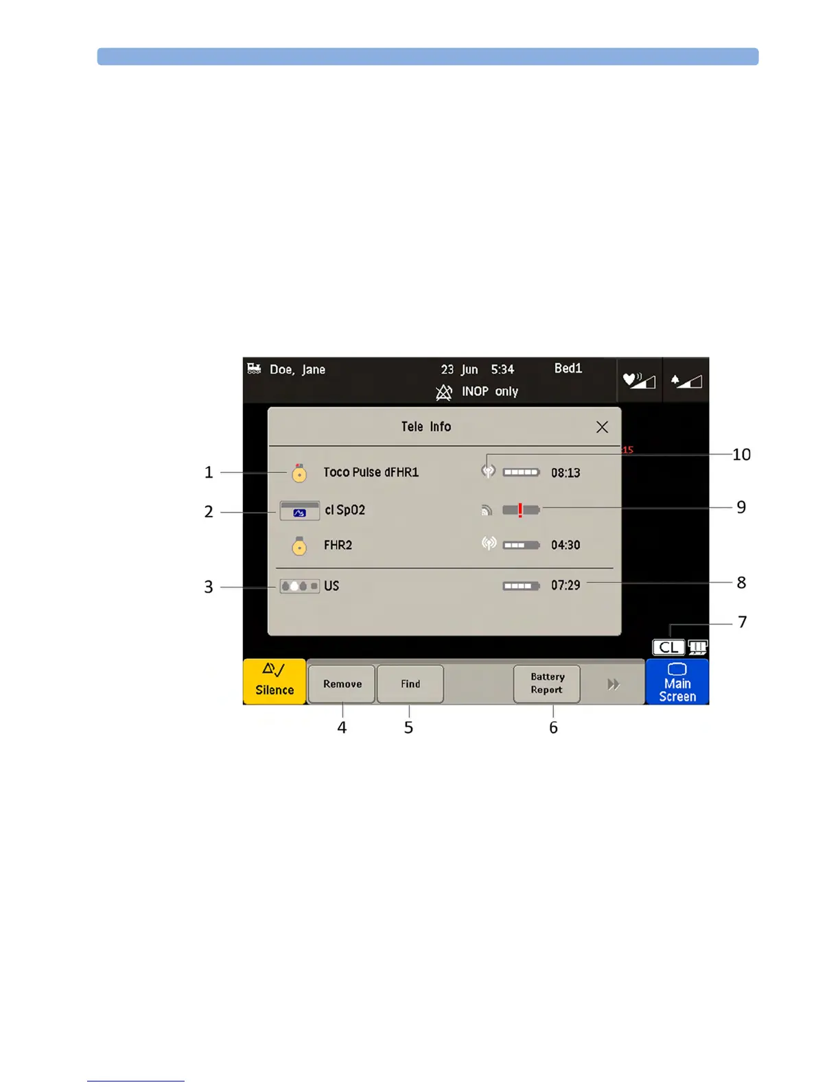 The Tele Info window of the fetal monitors allows you to manage the Avalon CL or CTS system.