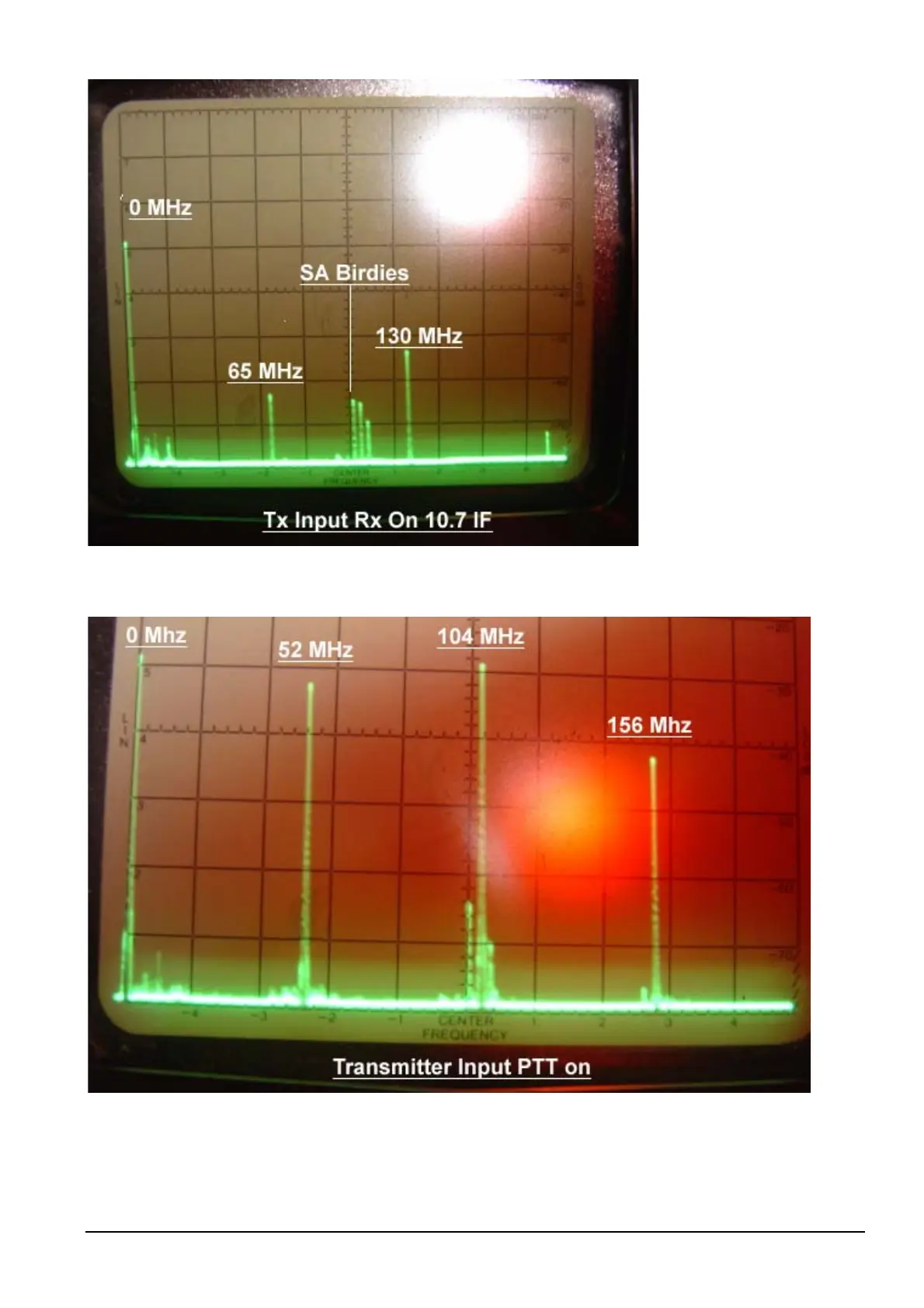 transmitter board input via coax with the Transmitter OFF and the Receiver on. The IF in this case is 10.5 MHz.