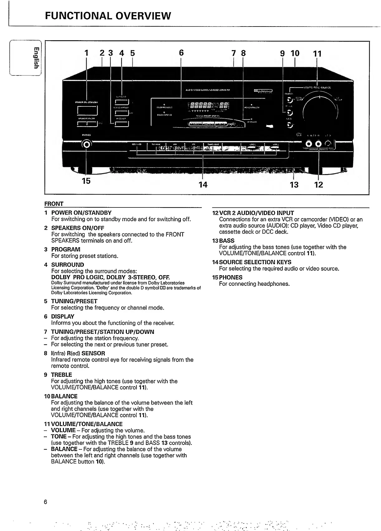Philips FR 731 - Functional Overview; Front Panel Controls