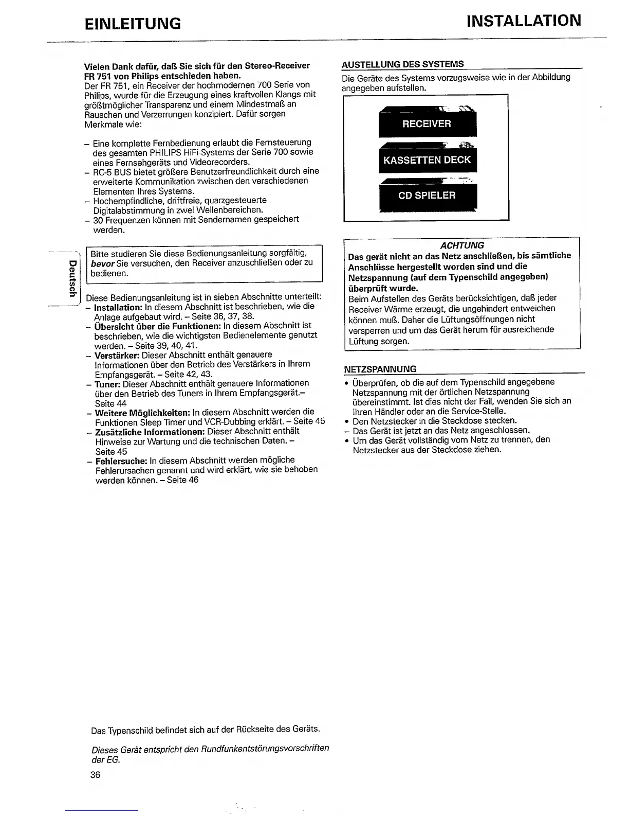 Philips FR 751 - System Setup; Safety Warnings; Mains Voltage