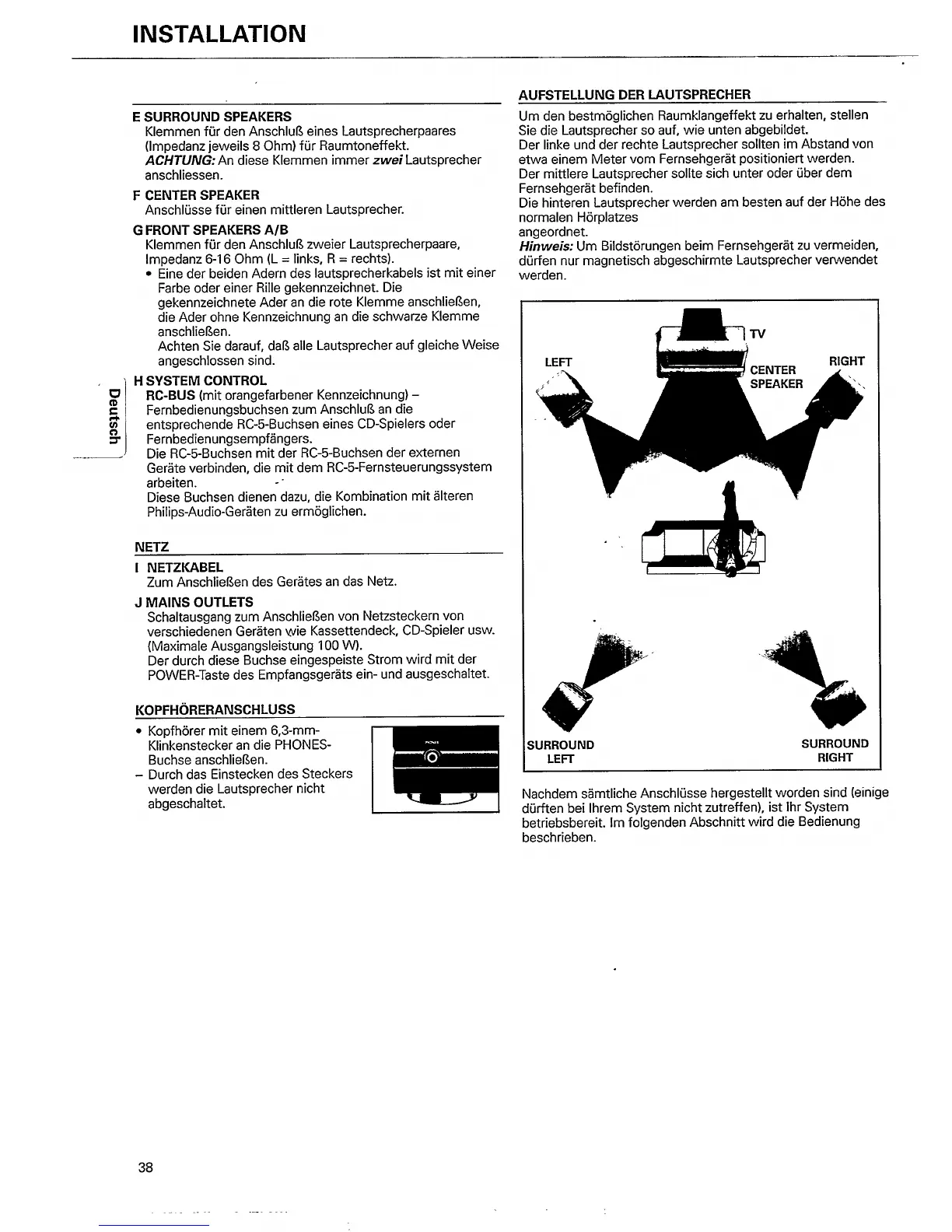 Philips FR 751 - Speaker Connections; Speaker Placement