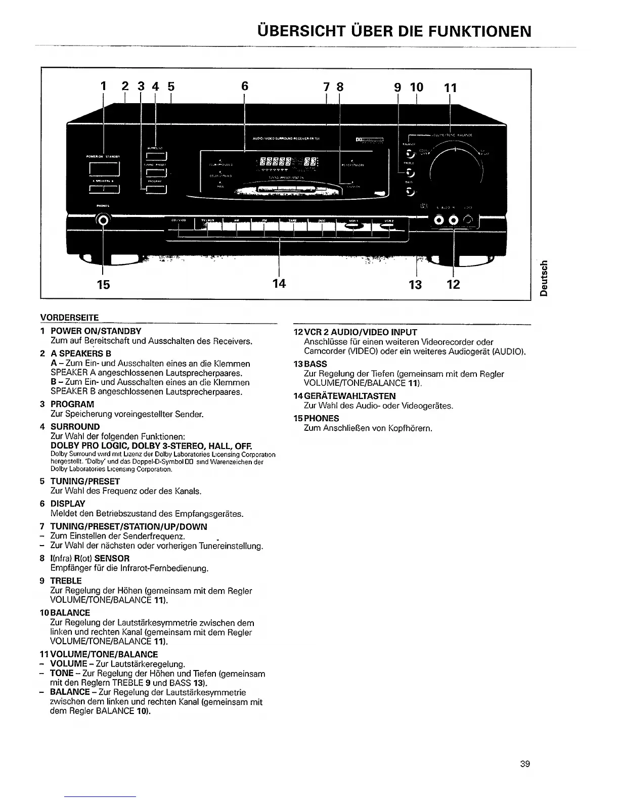 Philips FR 751 - Overview of Functions