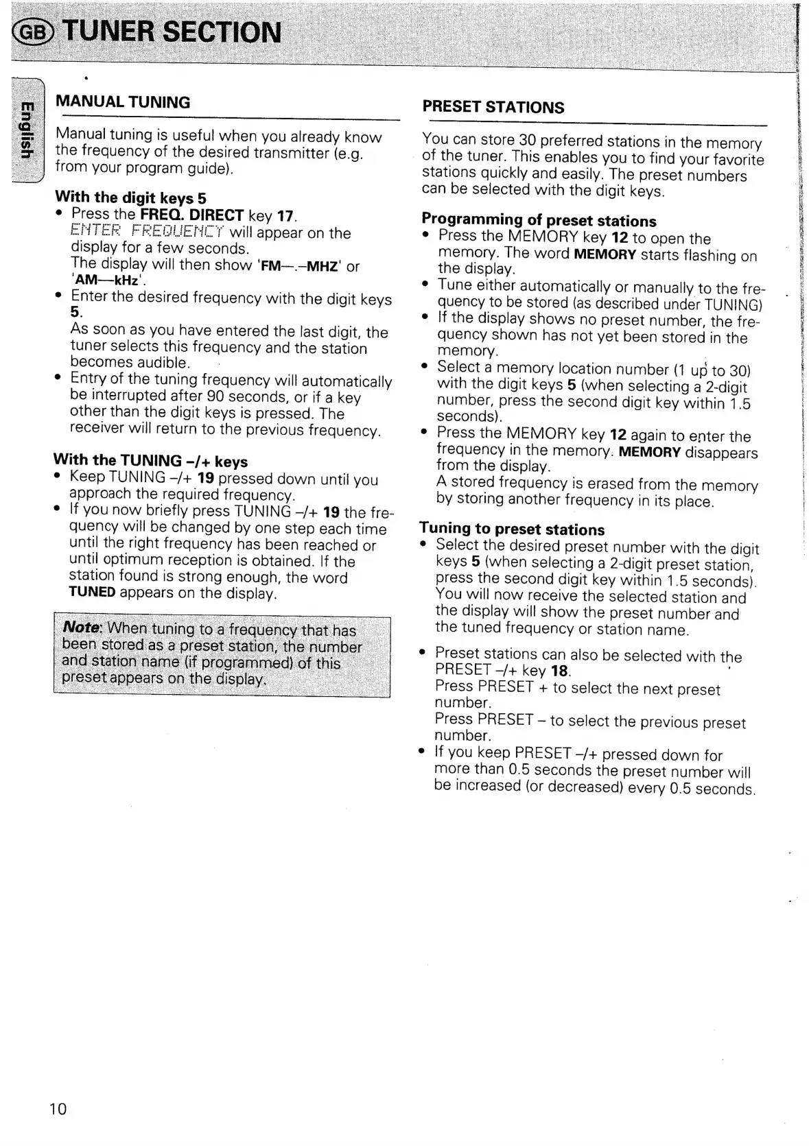 Philips FR 910 - Manual Tuning; Tuning to Preset Stations