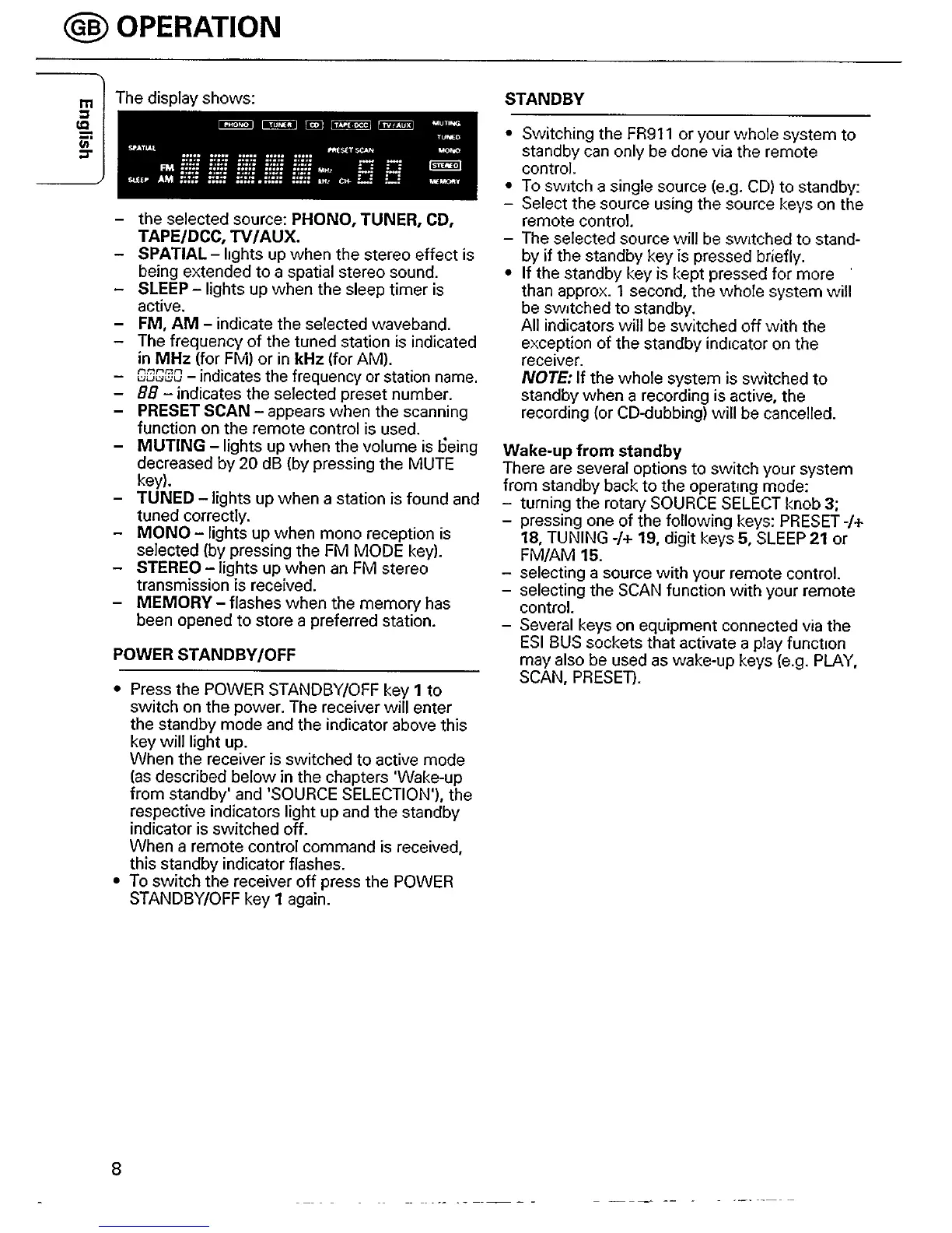 Philips FR 911 - Display Indicators; Power Standby;Off; Standby Operation