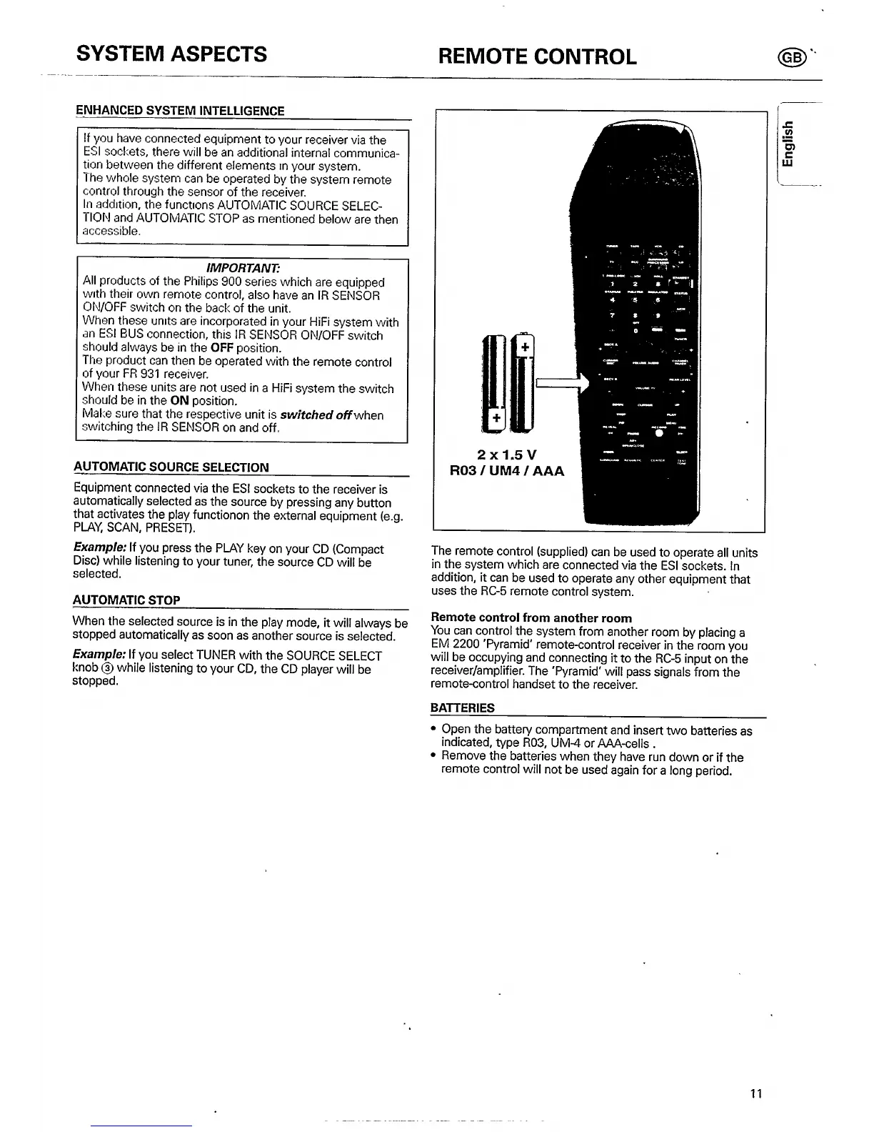 Philips FR 931 - Remote Control and System Integration; Enhanced System Intelligence (ESI); Automatic Source and Stop Features; Remote Control Usage