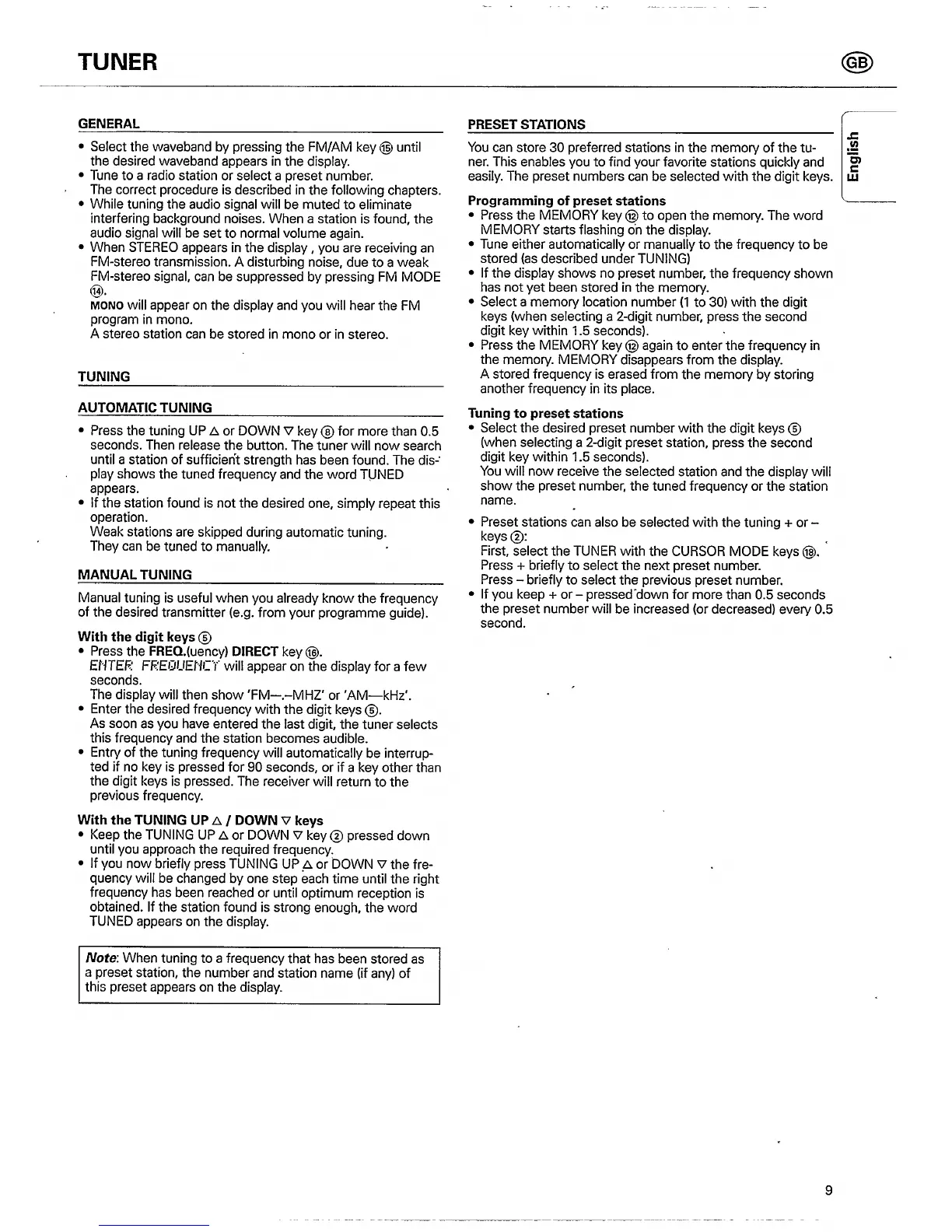 Philips FR 931 - Tuner Functions; Tuning Radio Stations; Preset Station Management