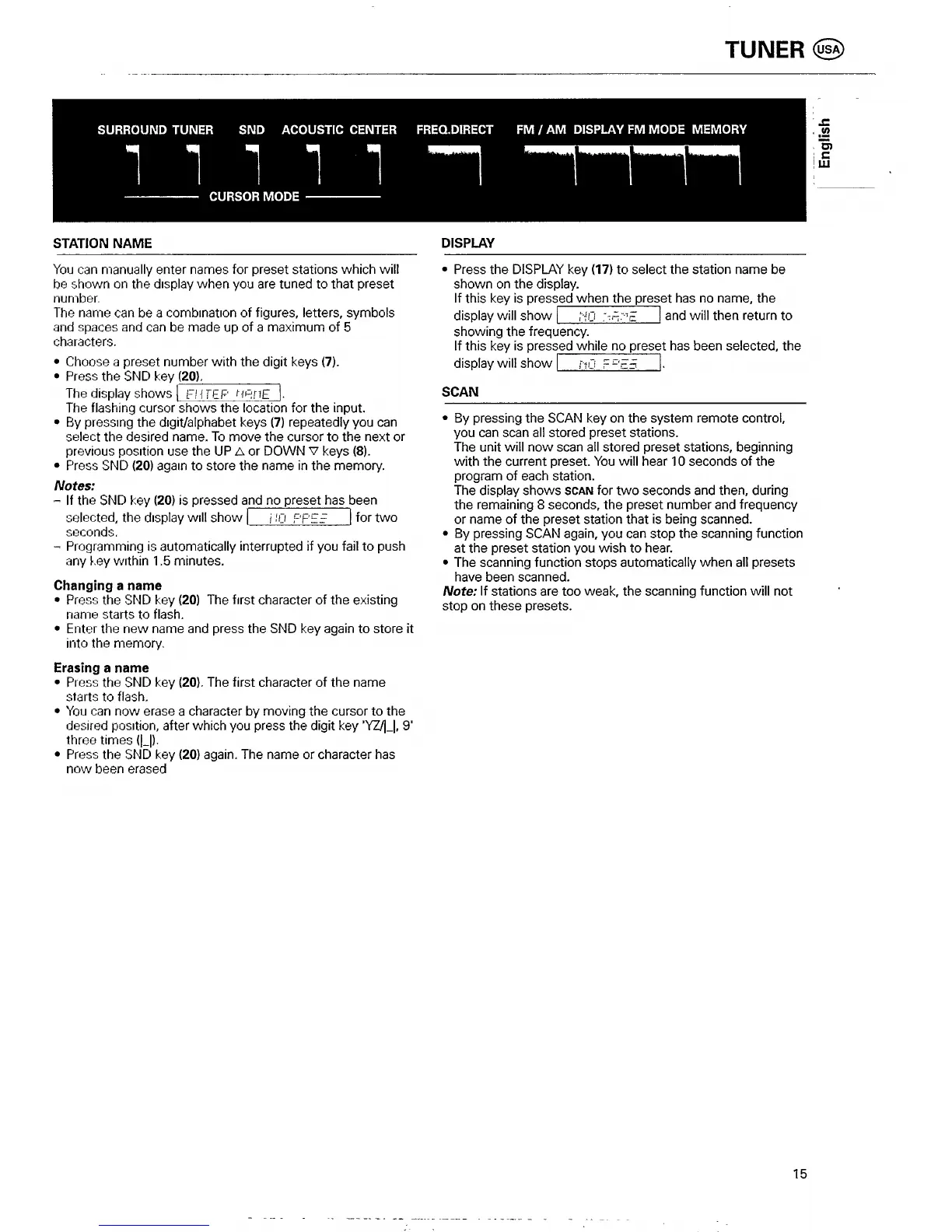 Philips FR 951 - Station Name; Scan; Changing a Name; Erasing a Name