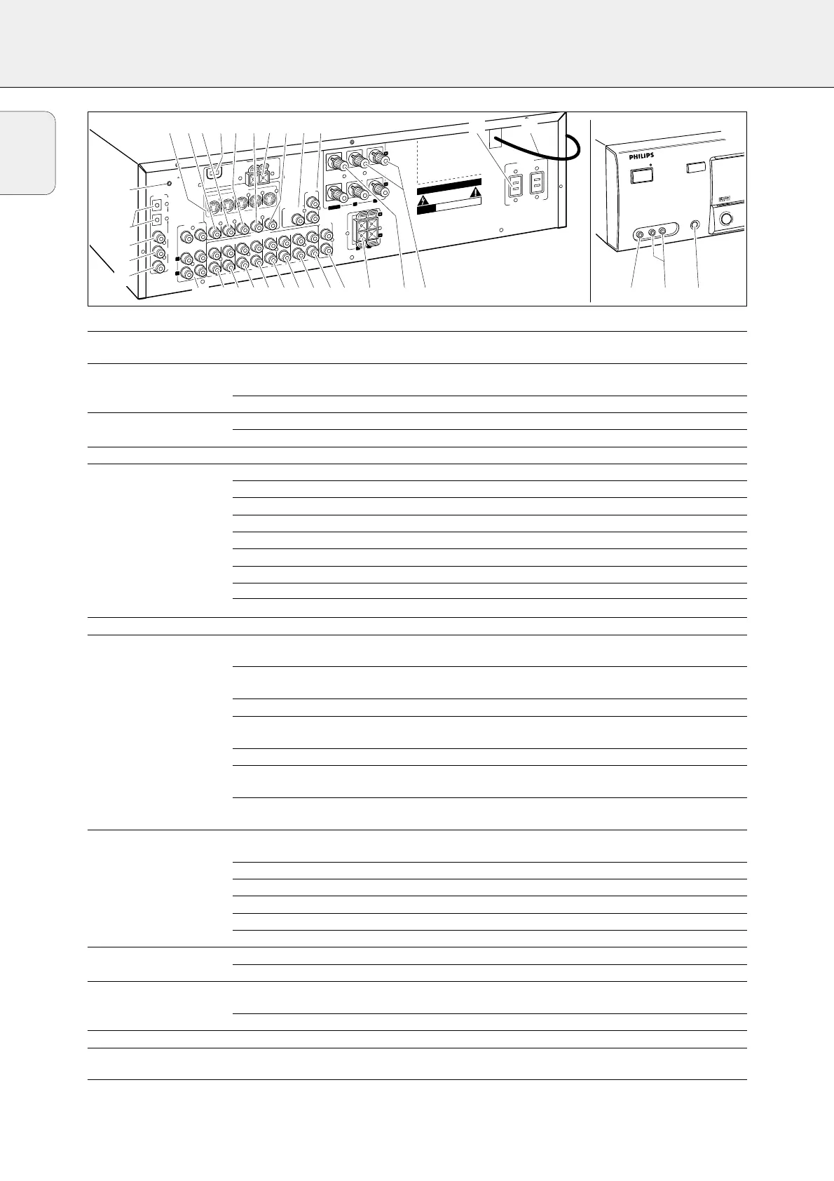 Preamplified outputs 7 CENTER PRE-OUT Input of a TV when it is used as the center speaker (only possible