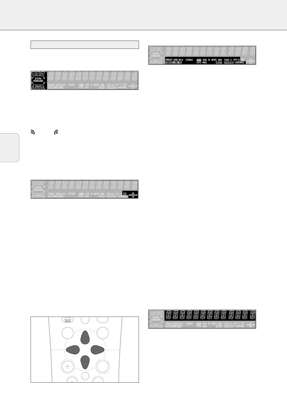 Die Anzeige des Receivers ist in 4 Bereiche geteilt, die