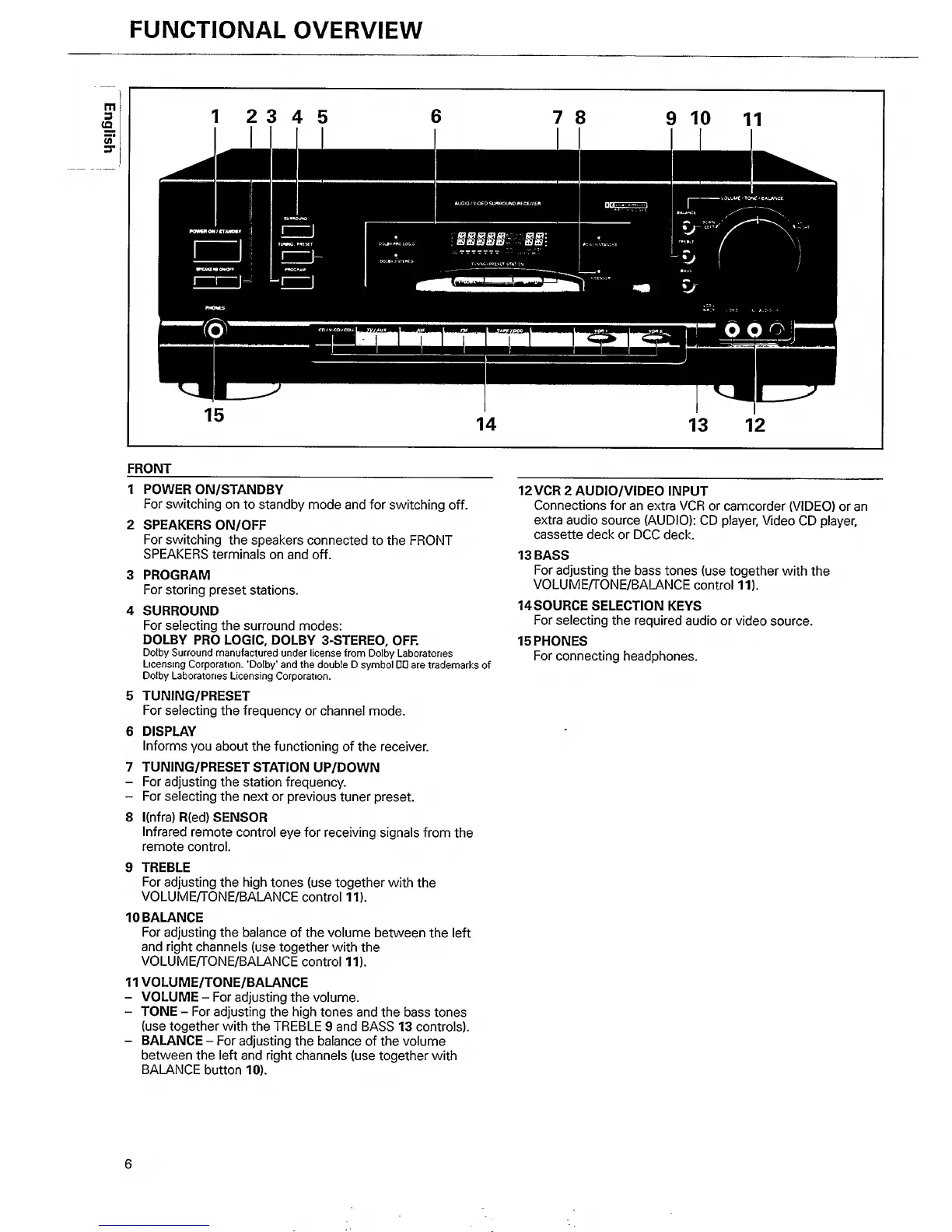 Philips FR732/00 - Functional Overview; Front Panel Controls