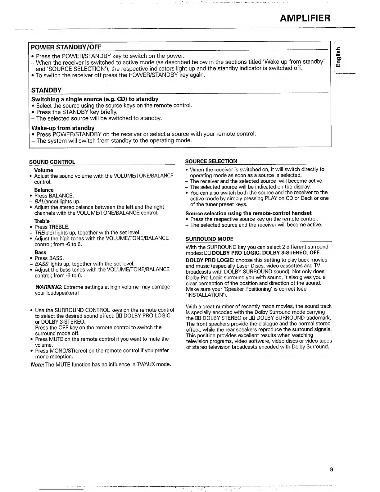 Philips FR732/00 - Amplifier; Power and Standby; Sound Controls; Surround Mode Settings