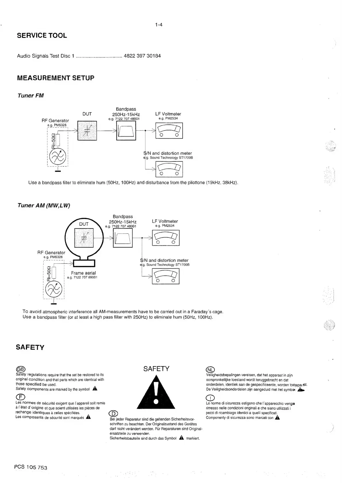 Philips FR965/00 - SERVICE TOOL AND MEASUREMENT; MEASUREMENT SETUP; SAFETY PRECAUTIONS