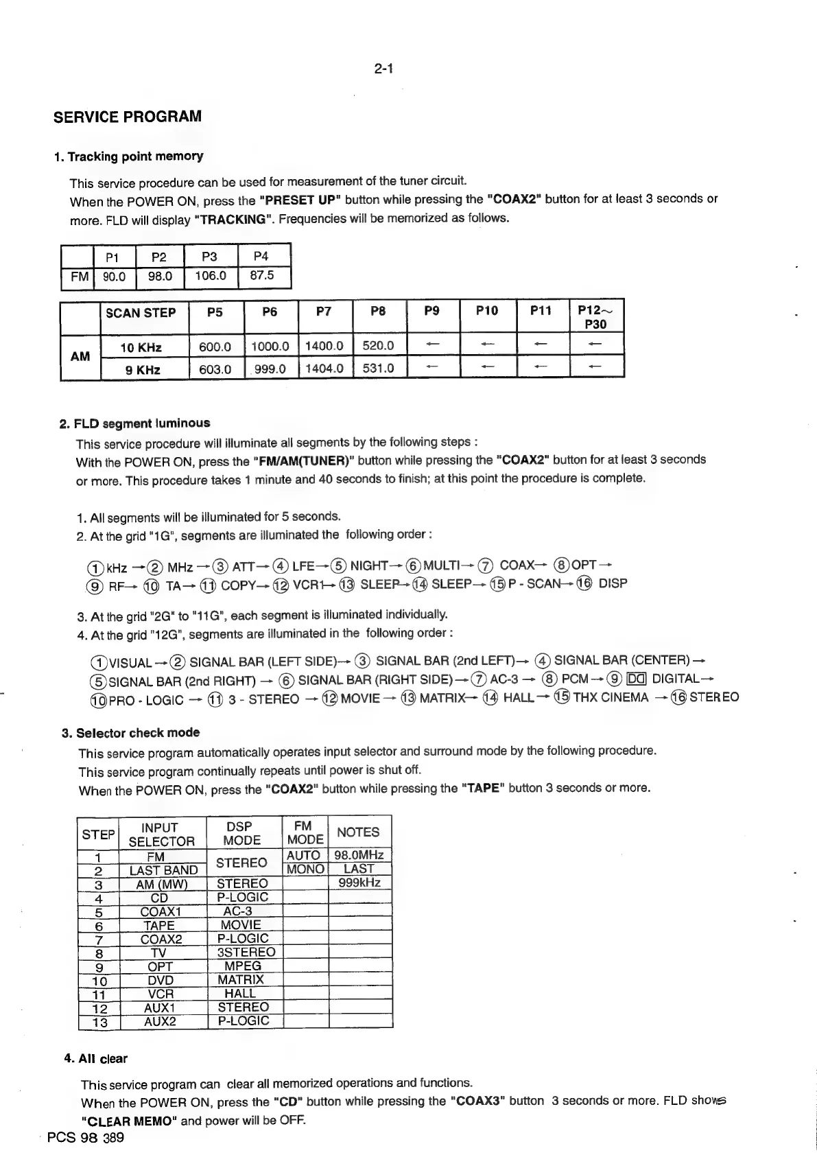 Philips FR980 - SERVICE PROGRAM; Tracking Point Memory; Selector Check Mode