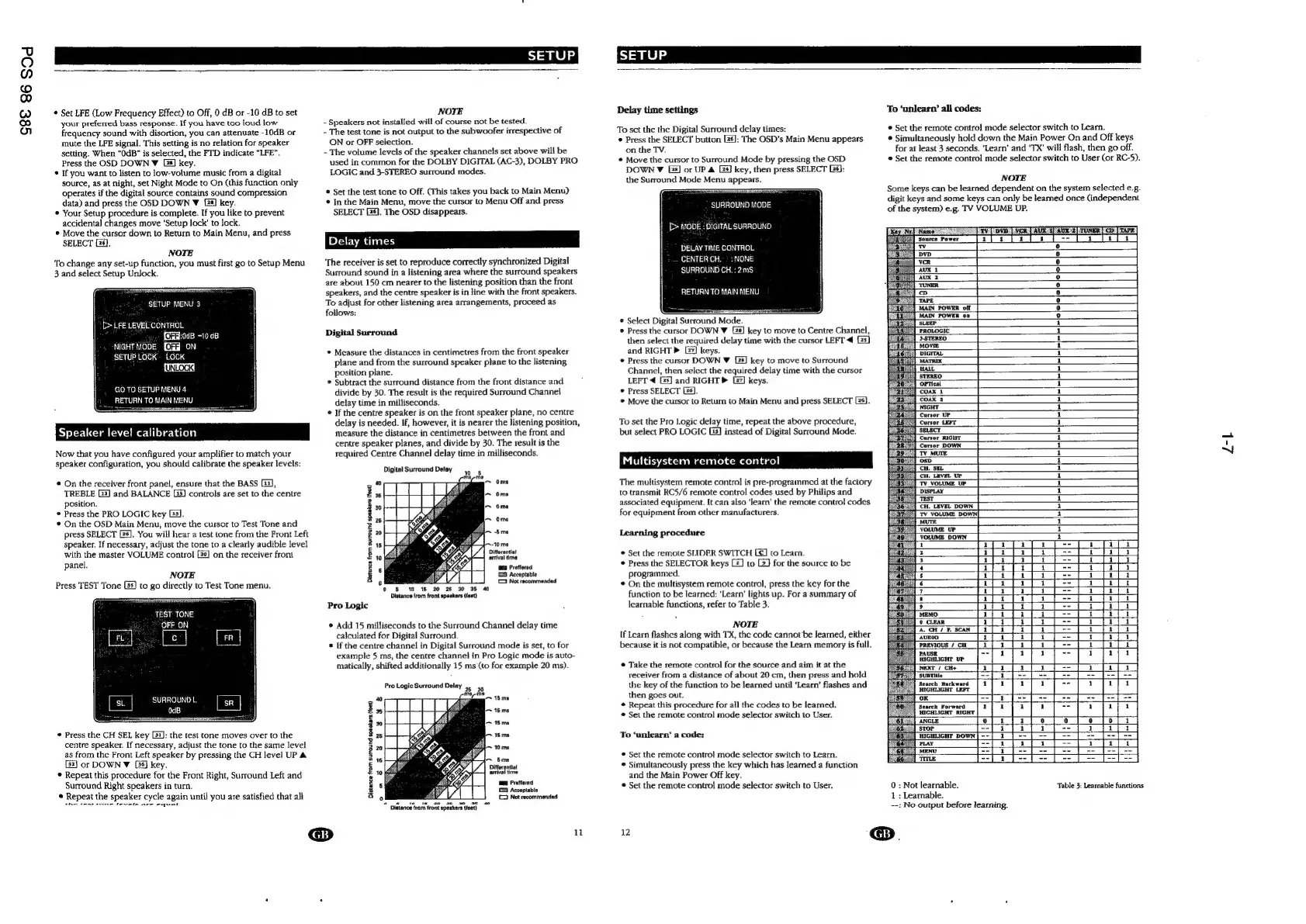 Philips FR980 - Speaker level calibration; Delay times; Digital Surround; Pro Logic