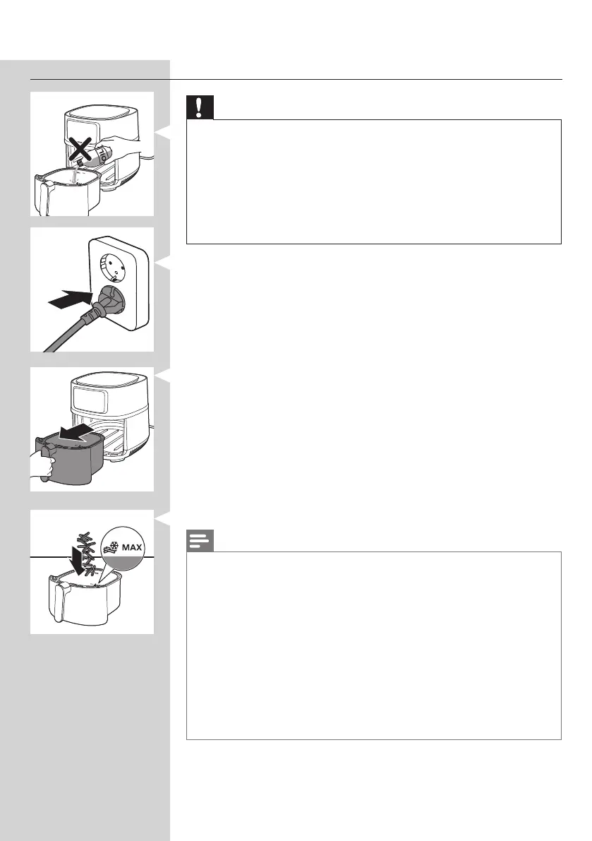 • Dit is een Airfryer en dit apparaat werkt met hete lucht. Vul de