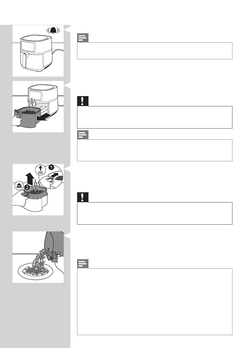 • Die Pfanne des Airfryers ist nach dem Kochen heiß. Stellen Sie