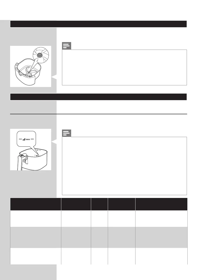 placez pas plus de frites que ce qui est indiqué dans le tableau des