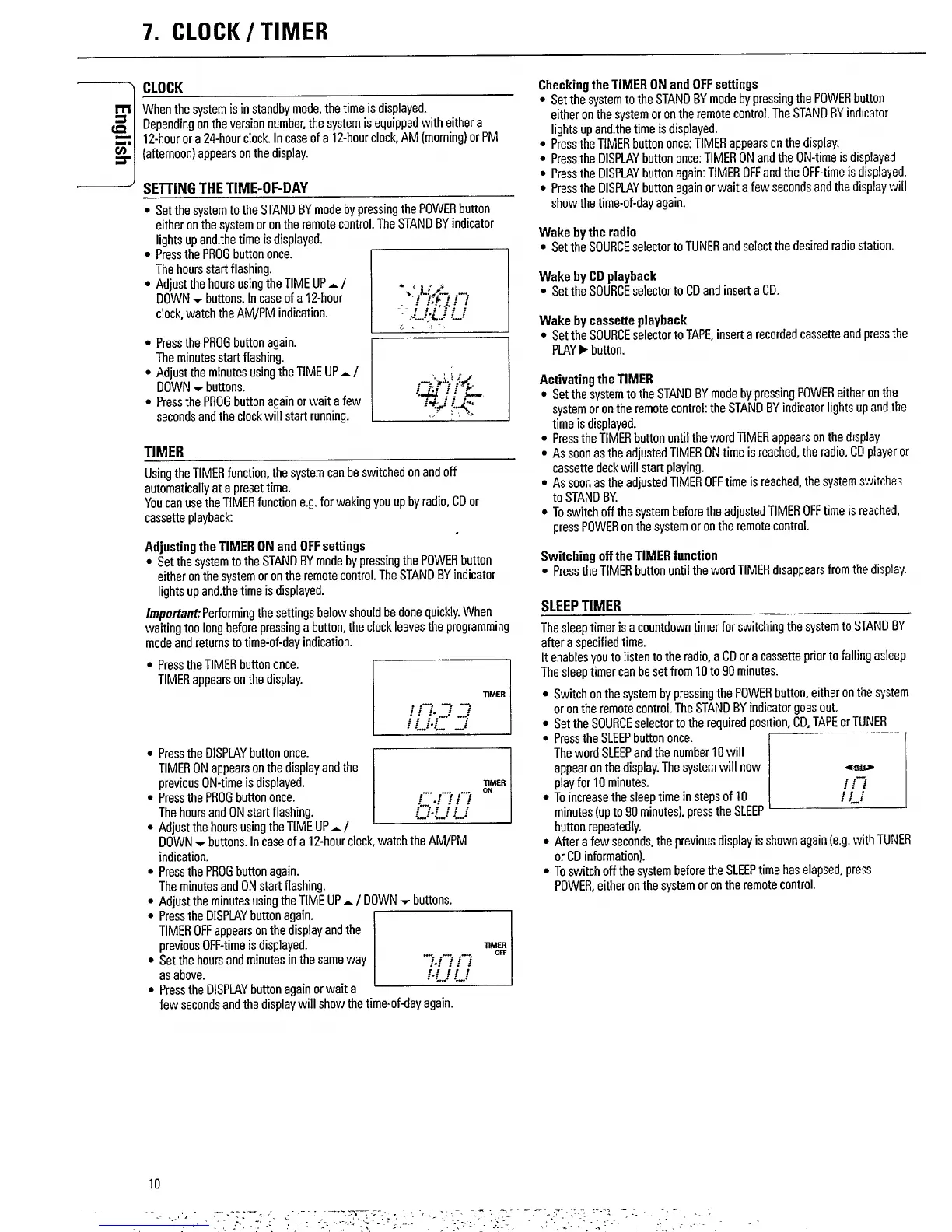 Philips FW 11 - Clock; Setting the Time of Day; Timer; Sleep Timer