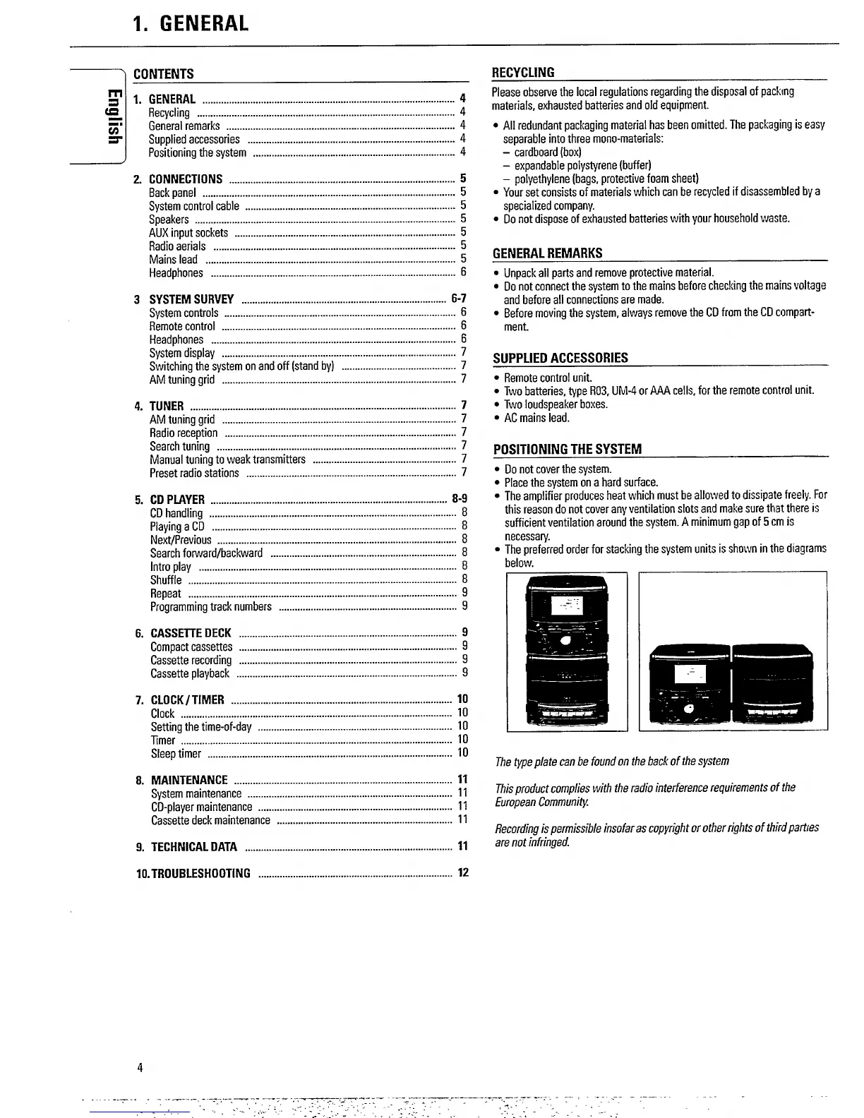 Philips FW 11 - General; Contents; Recycling; Supplied Accessories