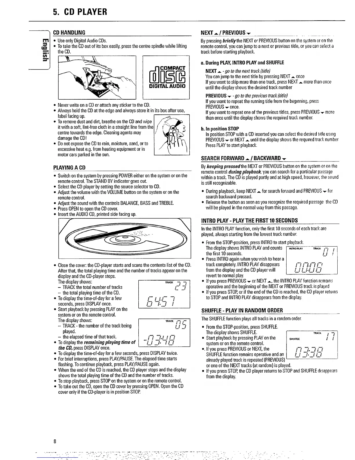 Philips FW 11 - CD Player; CD Handling; Playing a CD; Intro Play