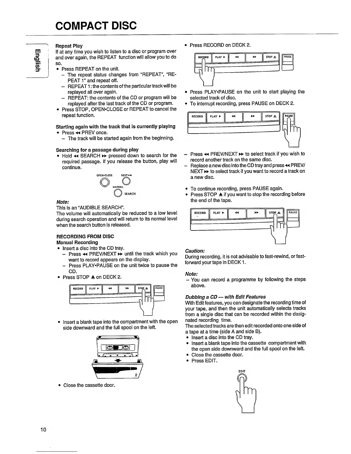Philips FW 26 - Repeat Play; Recording from Disc; Dubbing a CD