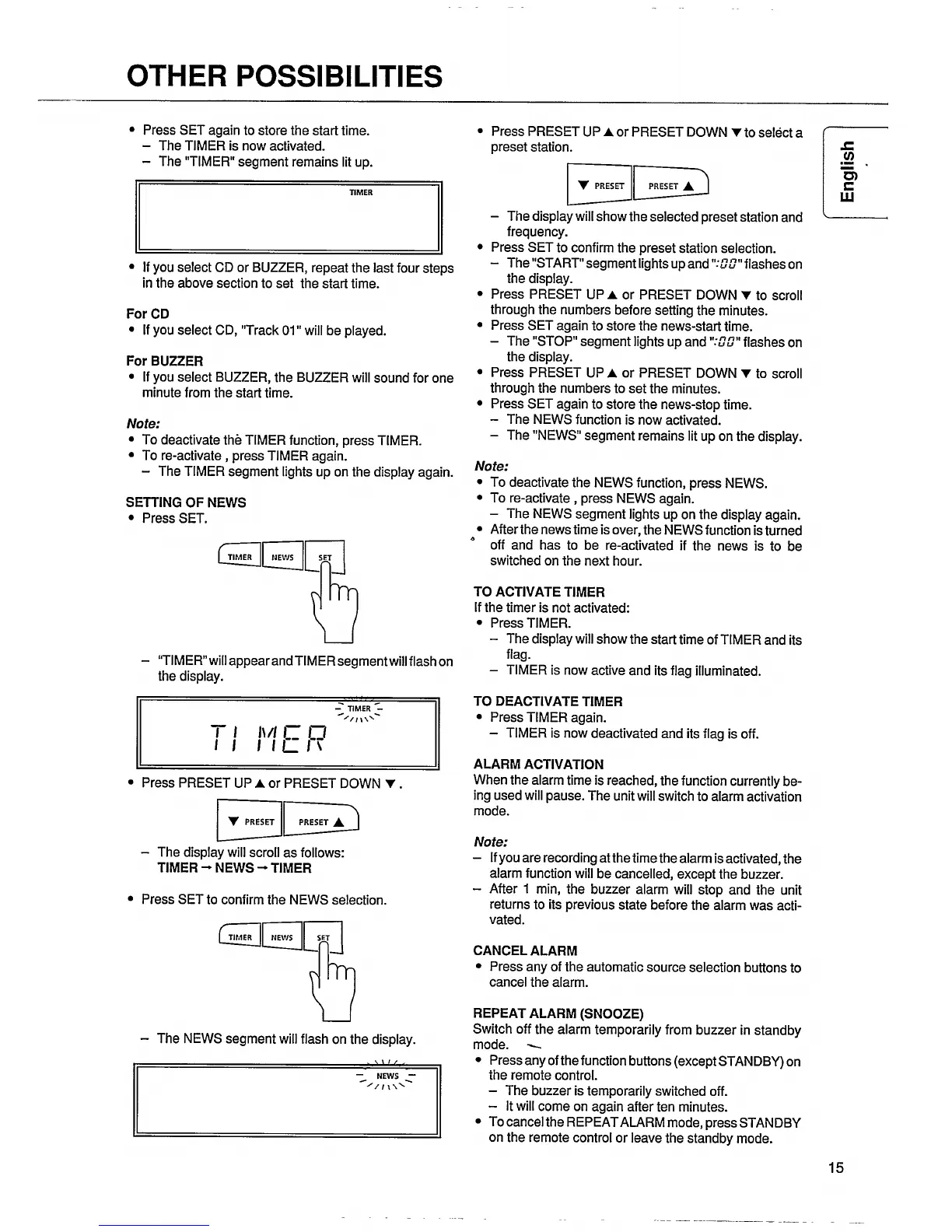 Philips FW 26 - SETTING OF NEWS; ALARM ACTIVATION; REPEAT ALARM (SNOOZE)