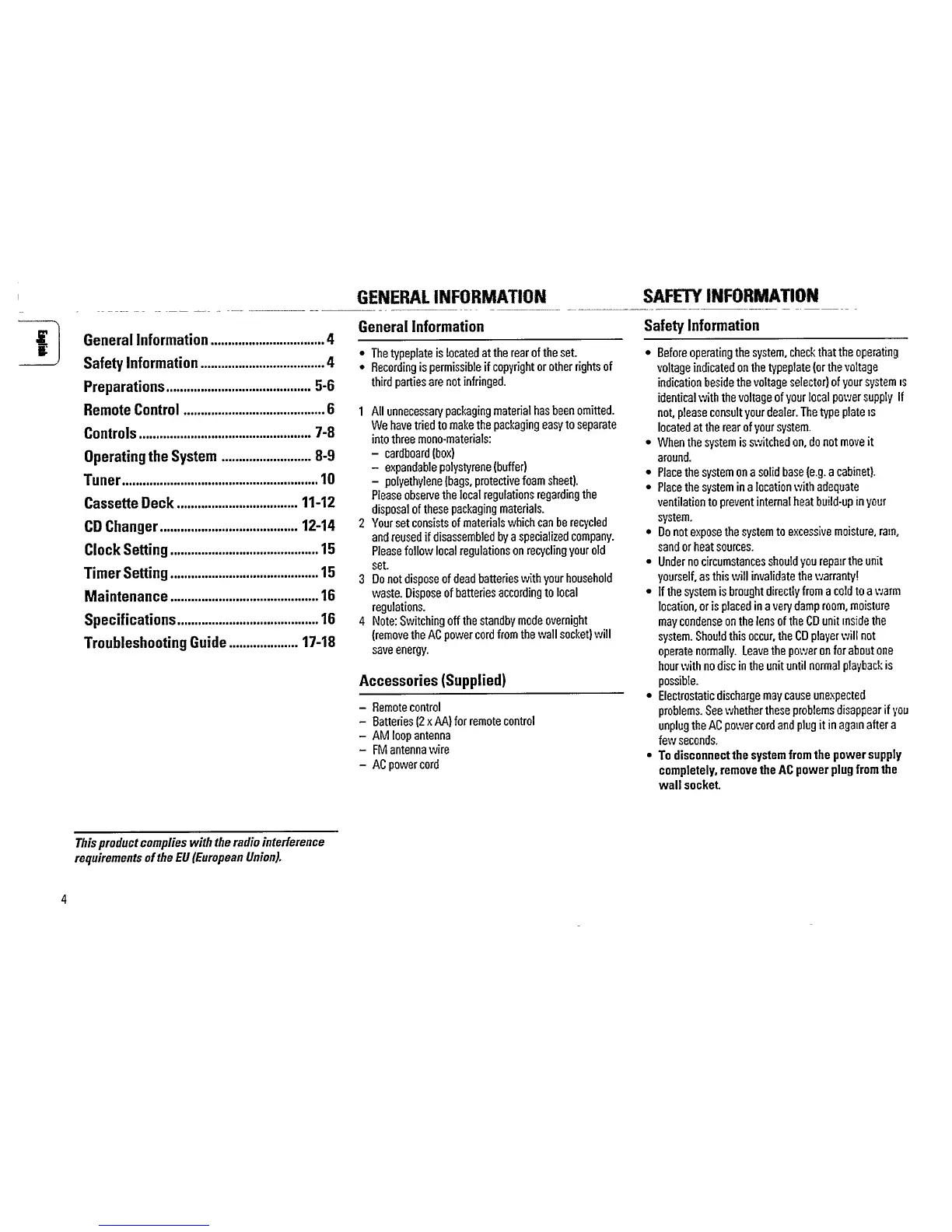 Philips FW 315C - General Information; Safety Information; Accessories