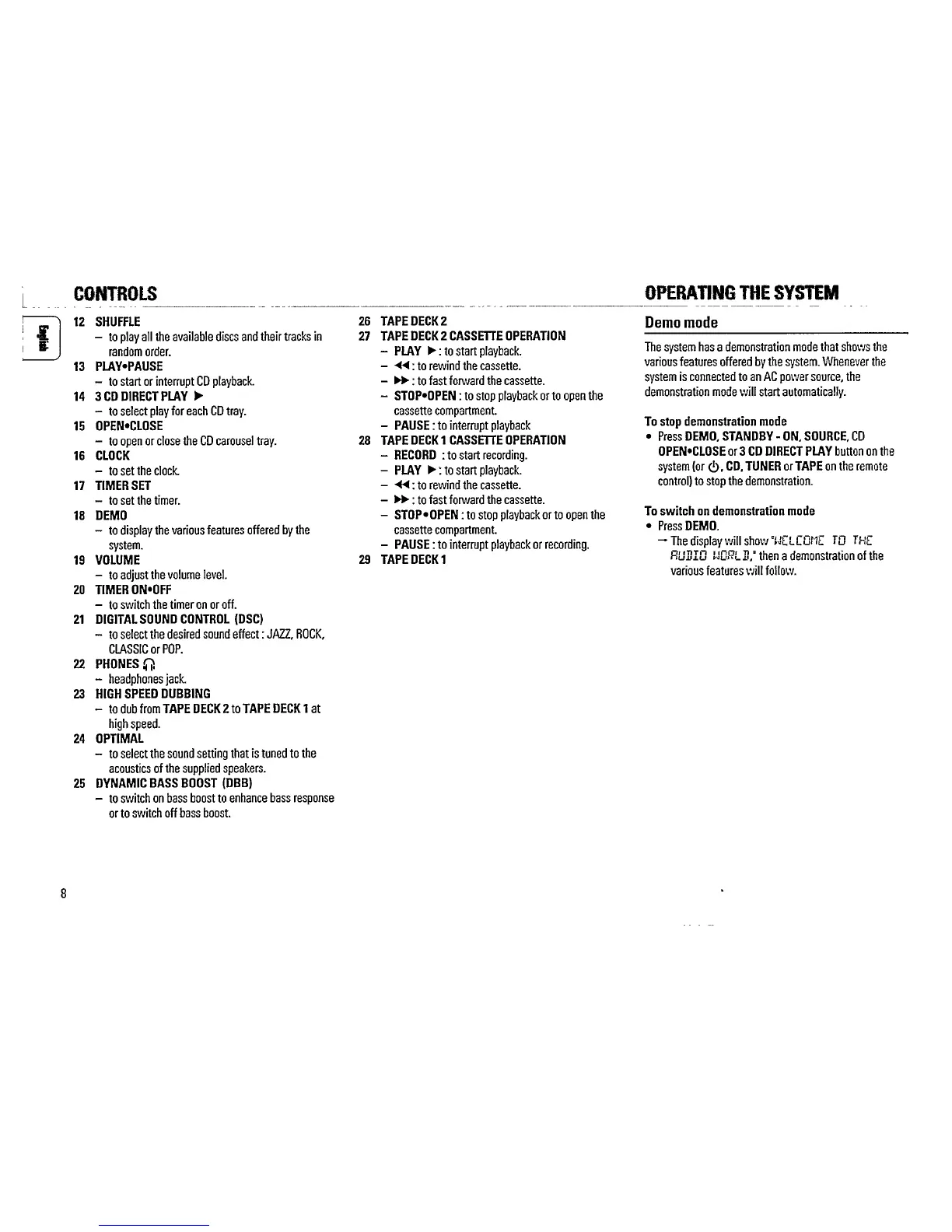 Philips FW 315C - Operating the System; Demo Mode; To Stop Demonstration Mode; To Switch on Demonstration Mode