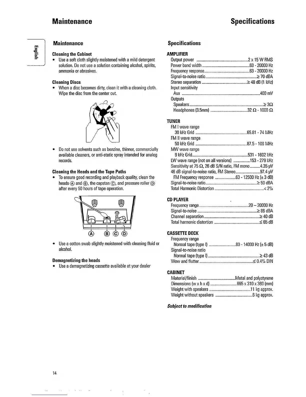 Philips FW 332 - Maintenance; Cleaning the Heads and the Tape Paths